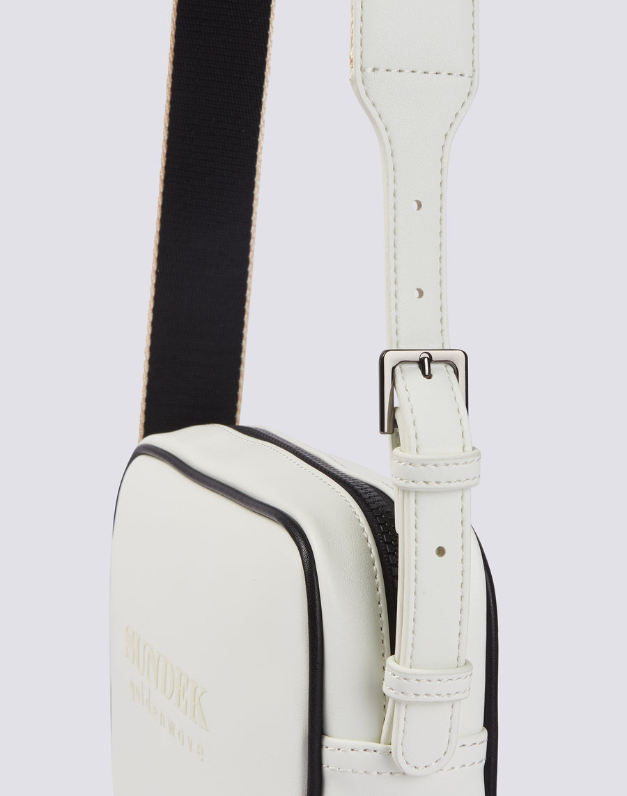 Nel tuo guardaroba di stagione non può mancare una camera bag versatile e di carattere, in perfetto stile Sundek. Perfetta se sei sempre in movimento e vuoi portare i tuoi essenziali con stile e praticità. In simil pelle con scritta Sundek Goldenwave davanti. Misure cm 21X14X5,5.