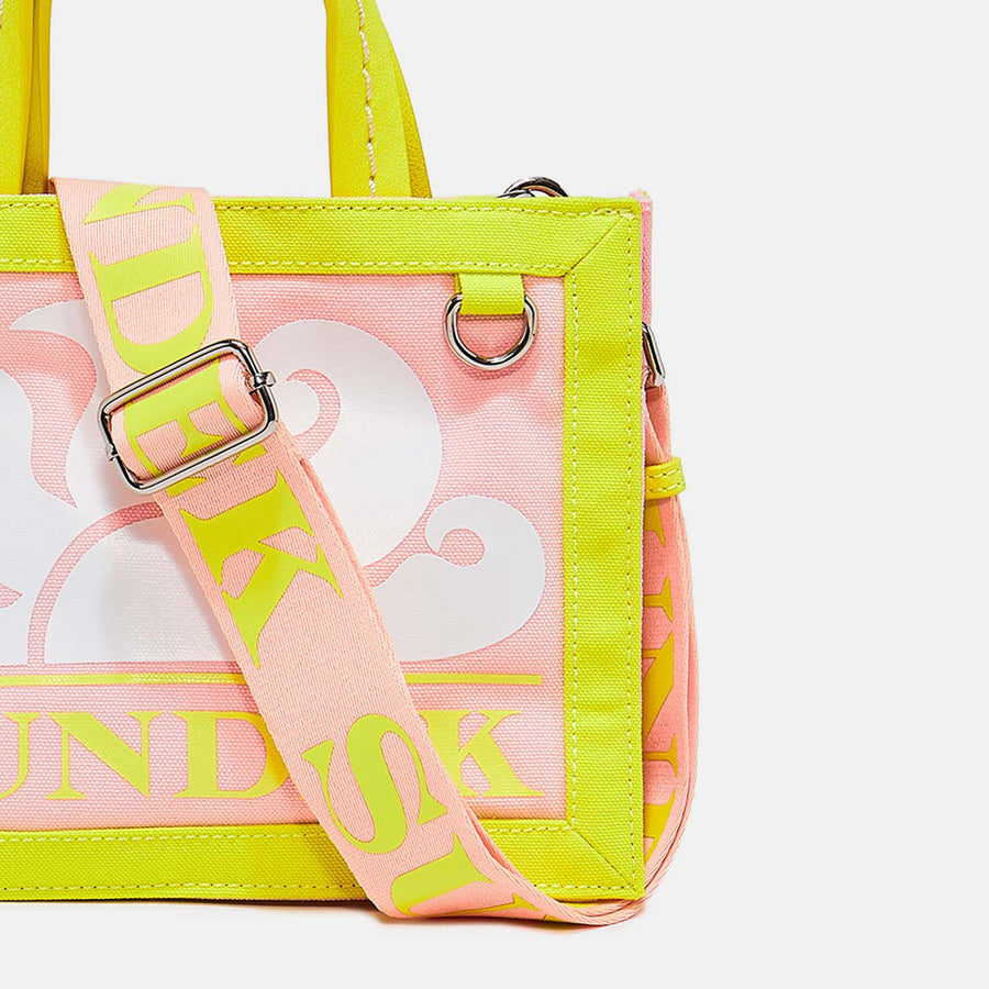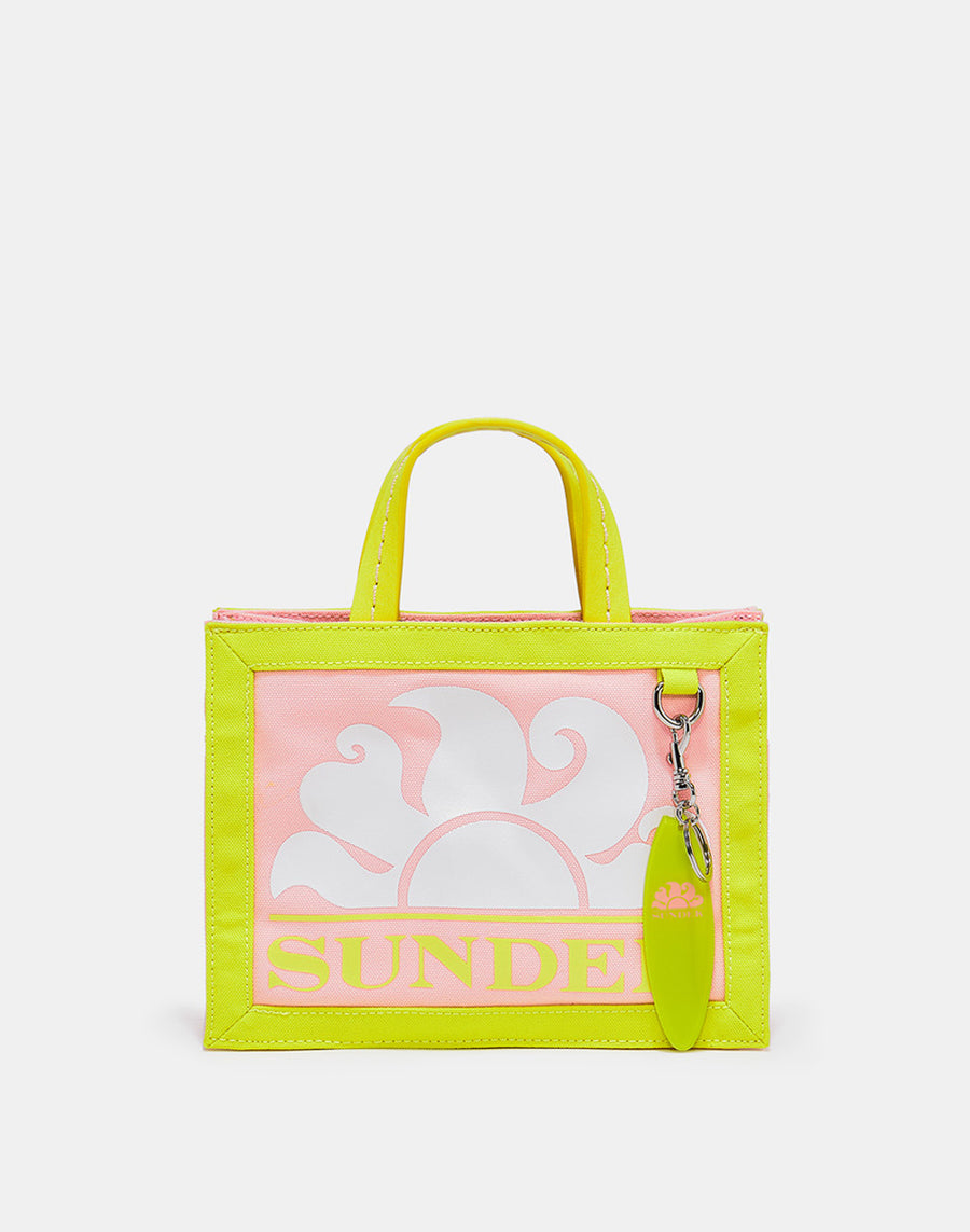 Borsa piccola da portare a mano o con tracolla. In canvas con logo stampato e tracolla rimovibile. Charm con la caratteristica forma di tavola da surf che richiama la storia di Sundek