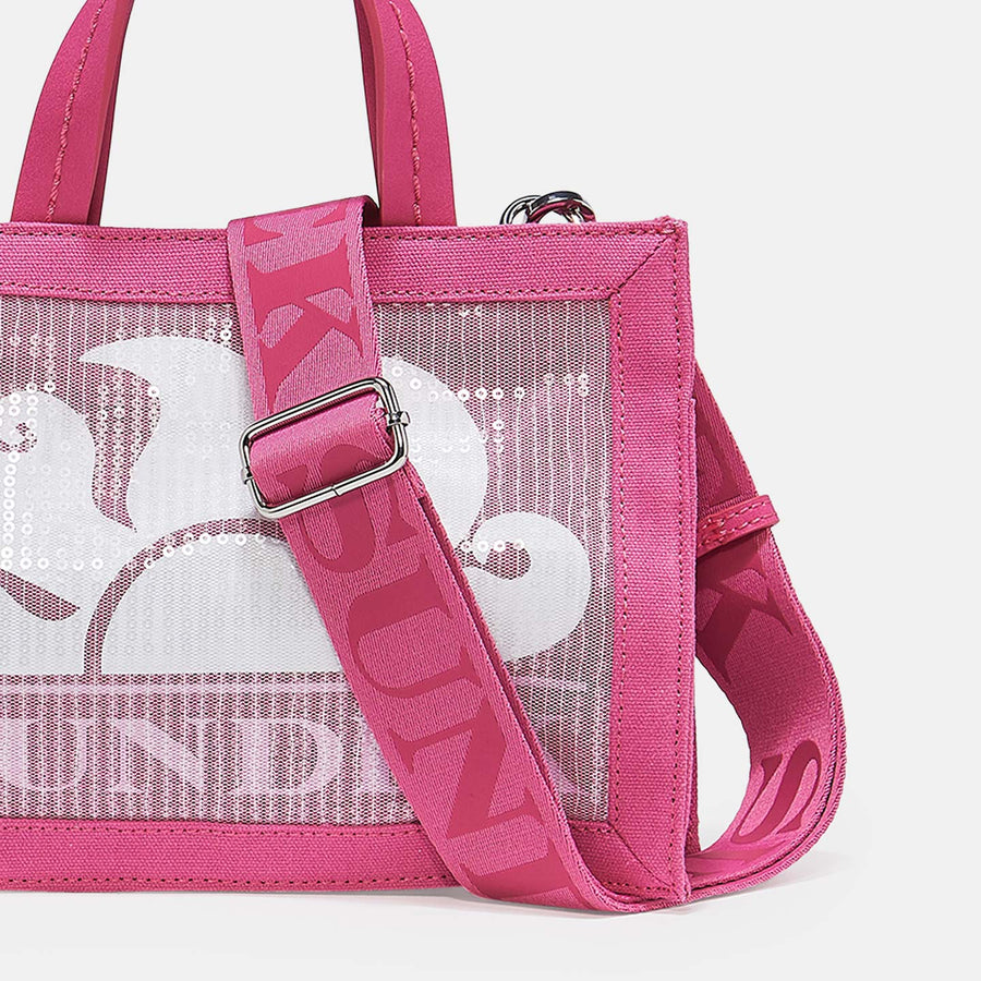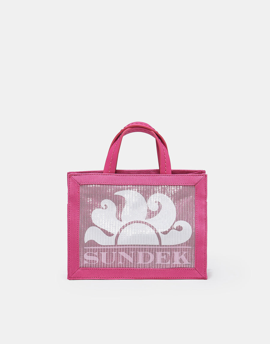 Borsa piccola in mesh con dettagli in paillettes con logo Sundek stampato. Questa borsa è perfetta per la spiaggia grazie alla sua rete a trame sottili che impediscono il passaggio della sabbia.