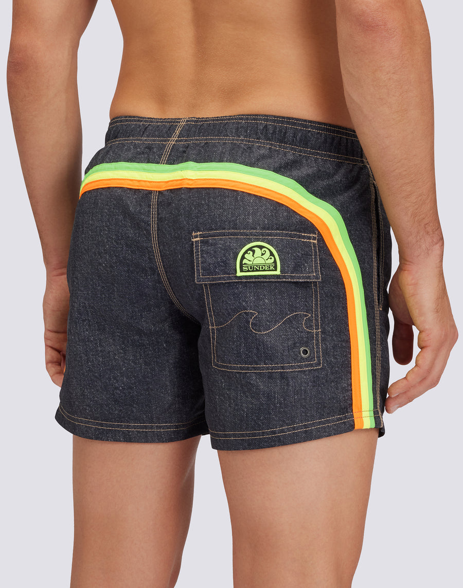 COSTUME DA BAGNO CORTO VITA ELASTICATA ICONIC TAFFETA GOLDENWAVE STAMPA DENIM