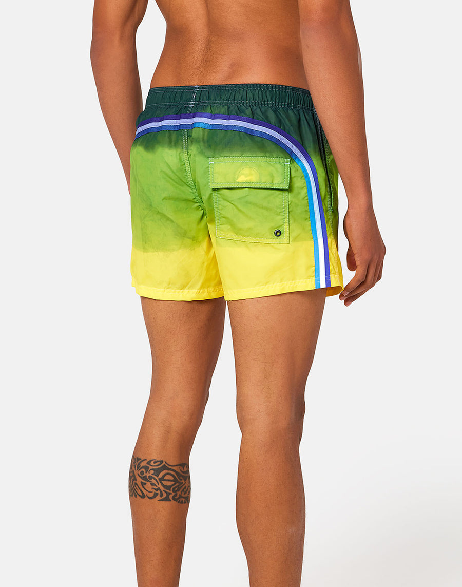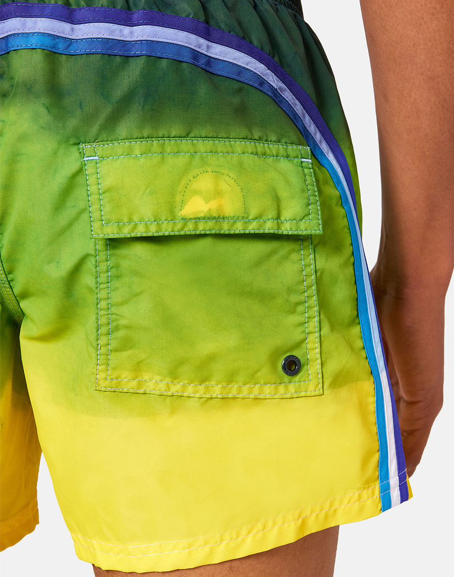 Boardshort con speciale lavorazione tie-dye, trattato e tinto con tecniche artigianali. Il tessuto storico e la costruzione del modello lo rende super resistente stagione dopo stagione.