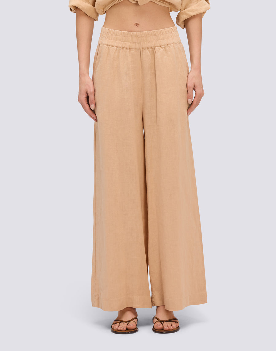 PANTALONI PALAZZO LUNGHI IN LINO TINTO CAPO