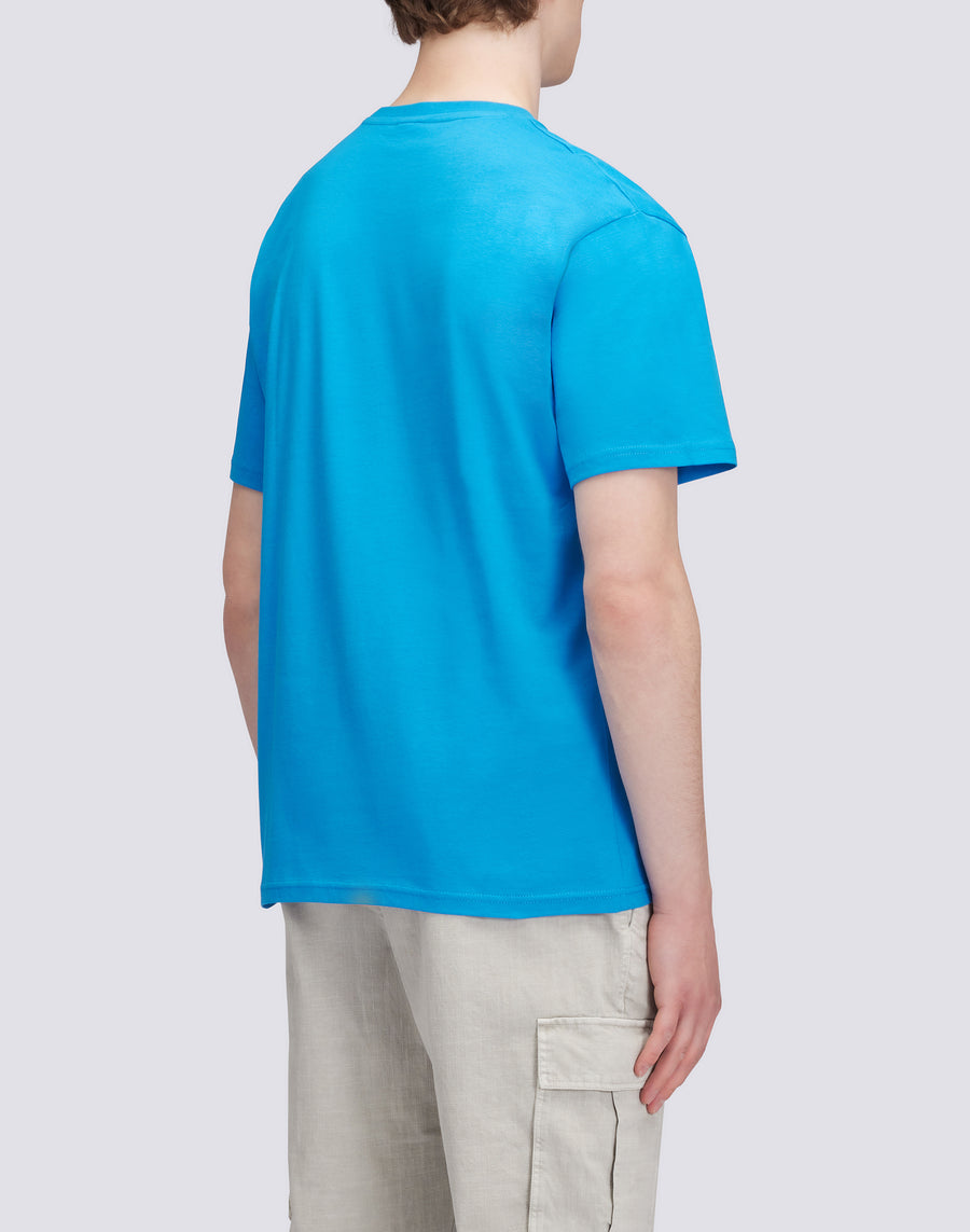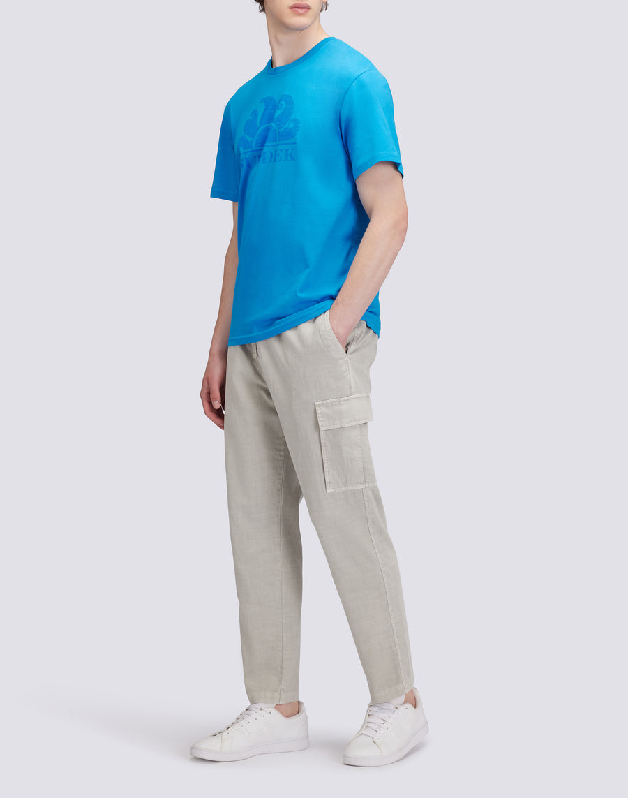 Facile da abbinare nei tuoi look casual, perfetta come base sotto a pull e cardigan. La t-shirt casual da uomo in cotone con maxi logo stampato tono su tono è un jolly del guardaroba, adatta anche in viaggio.