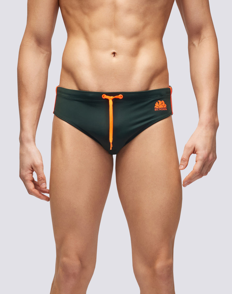 Costume slip uomo tinta unita e vita regolabile. Lo slip da mare monocromo con laccio coulisse e tre bande laterali colorate a contrasto per un look deciso e funzionale. Si asciuga velocemente e ti dà comfort e resistenza in acqua e fuori dall'acqua: indossalo per nuotare e allenarti e quando ti riposi e prendi il sole.