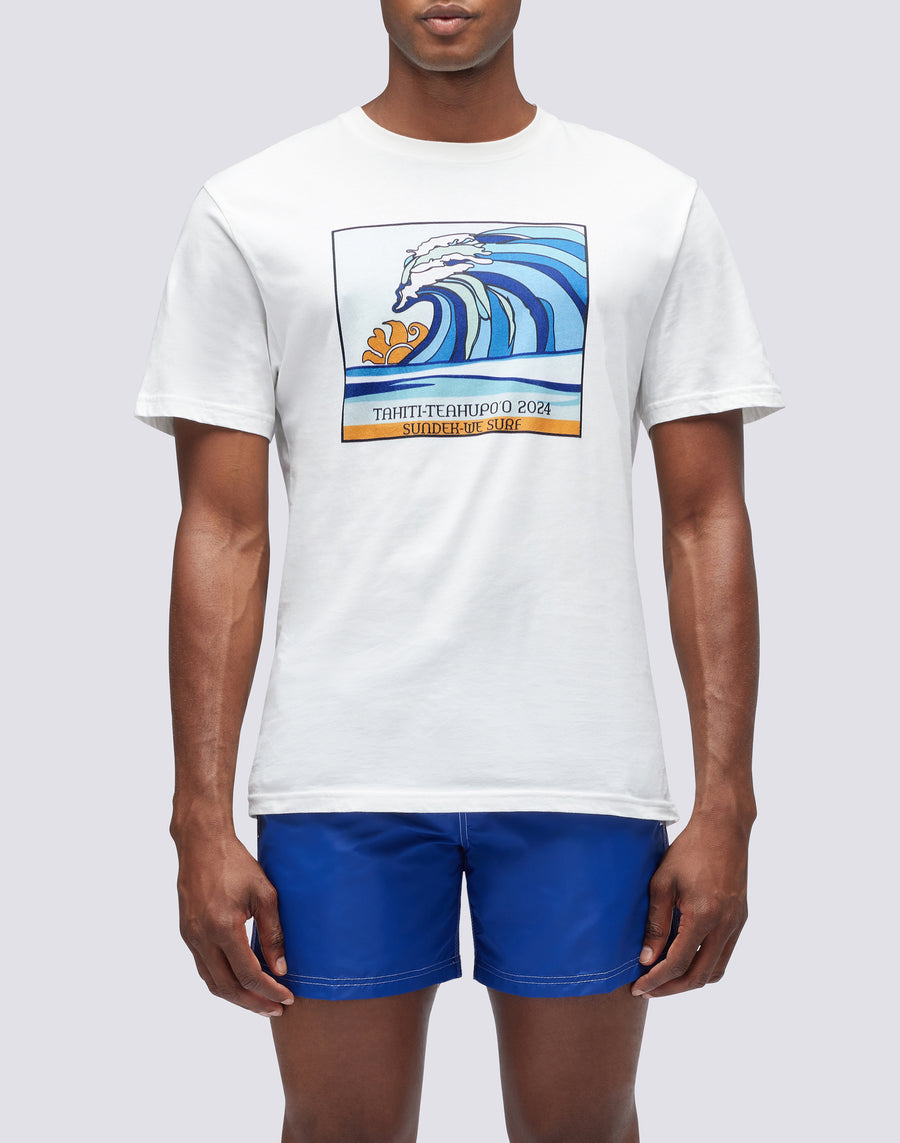 La T-shirt Tahiti è la scelta ideale per un look casual e sportivo. Realizzata in morbido cotone, rappresenta un omaggio alle Olimpiadi 2024 e all'incantevole isola di Tahiti, che ospiterà le gare di surf. Goditi l'estate e i giochi con stile!