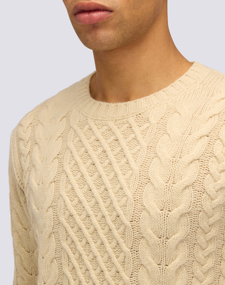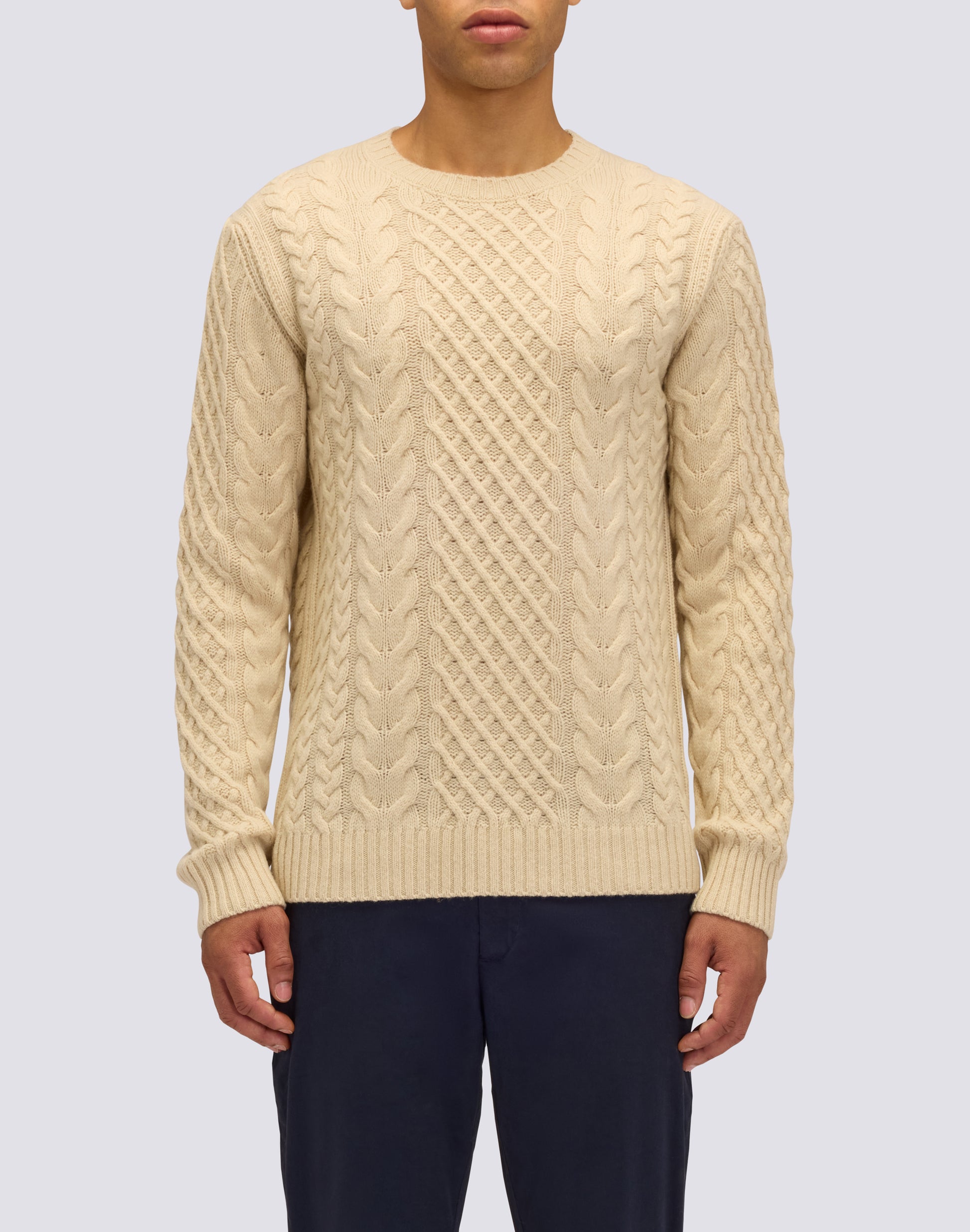 MAGLIONE UOMO GIROCOLLO CON TRECCE IN LANA MERINO E CACHEMIRE