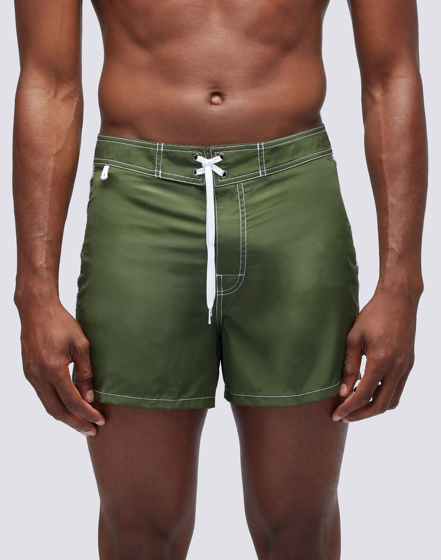Costume a pantaloncino a vita bassa e fissa realizzato nel nostro iconico tessuto Nylon Taffeta. Dotato di tripla cucitura sulle aree di maggior stress per una resistenza ottimale. L'iconico arcobaleno decora il back. Lunghezza esterno coscia 14"/35 cm (in taglia 32).