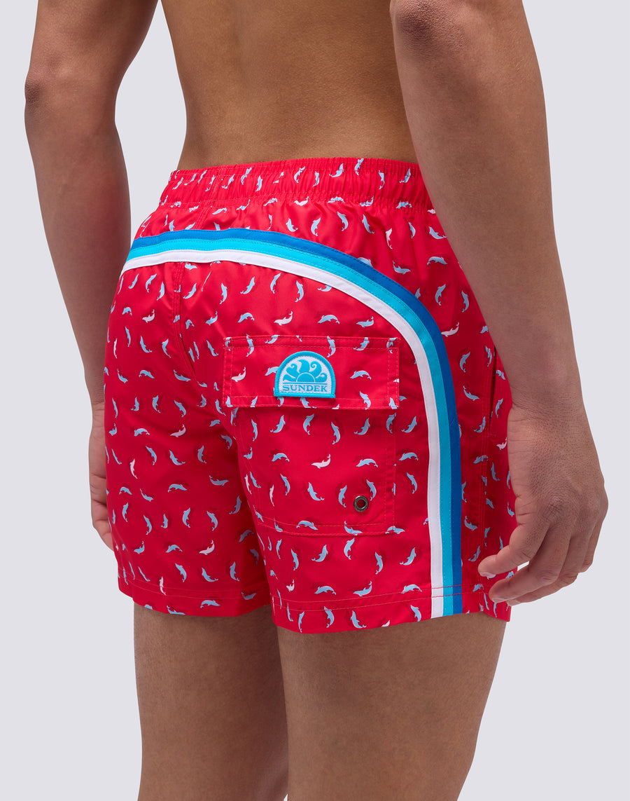 COSTUME DA BAGNO CORTO VITA ELASTICATA IN POLIESTERE RICICLATO CON STAMPA DELFINI