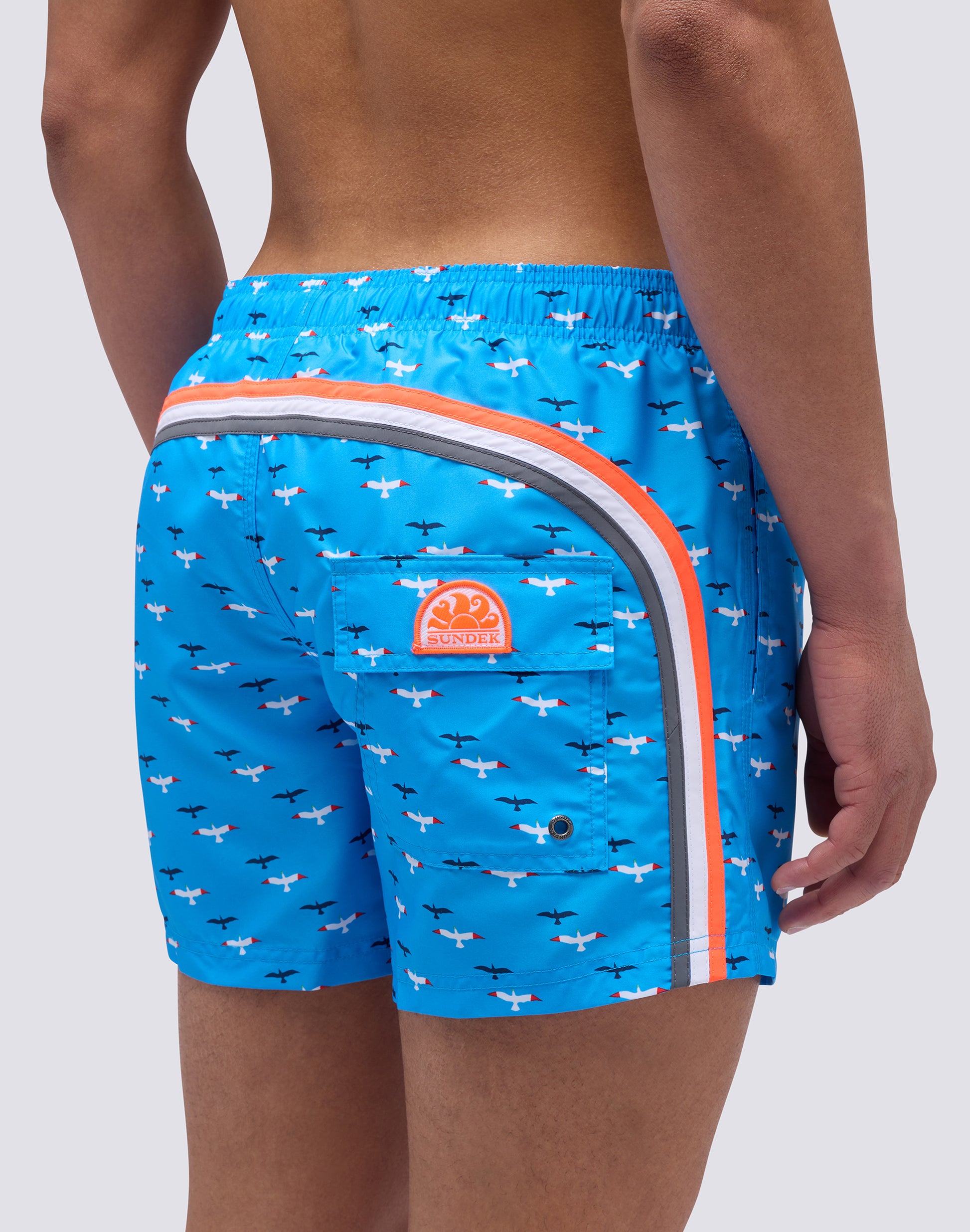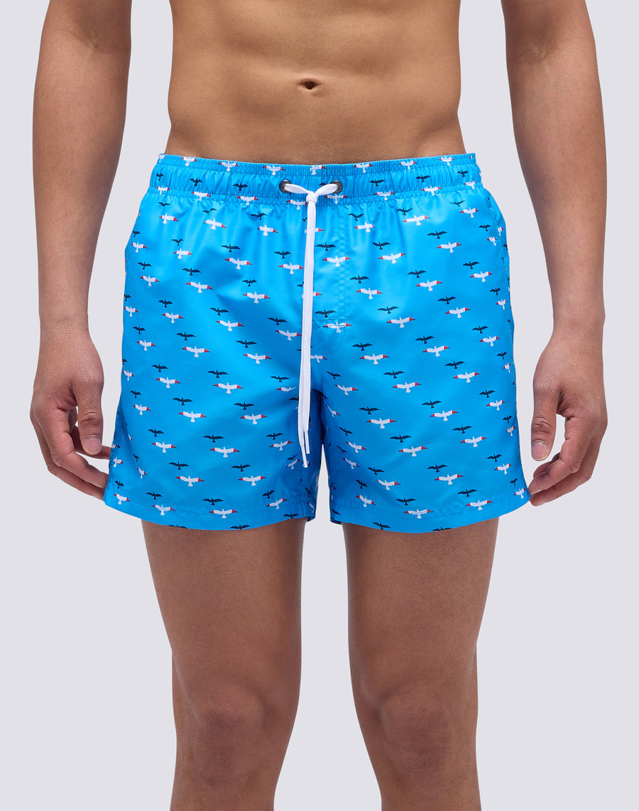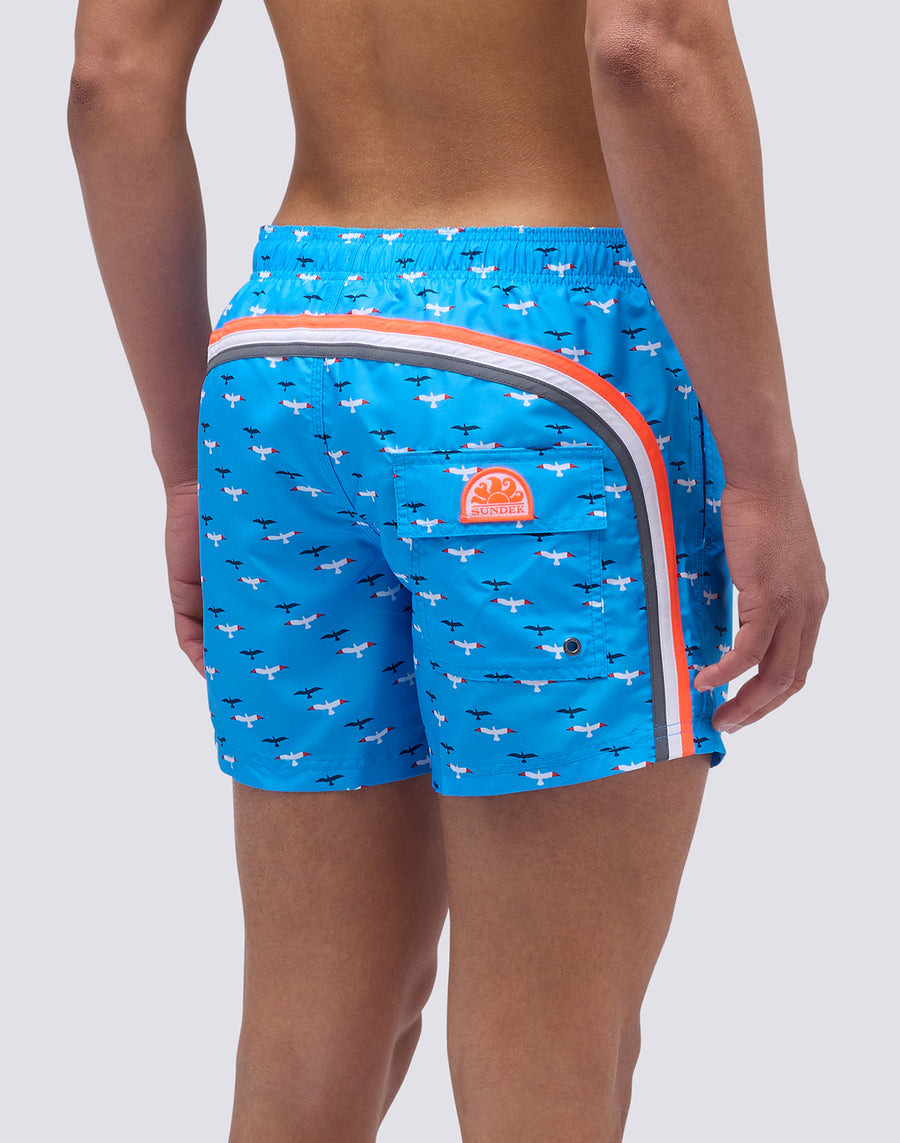 COSTUME DA BAGNO CORTO VITA ELASTICATA IN POLIESTERE RICICLATO CON STAMPA GABBIANI
