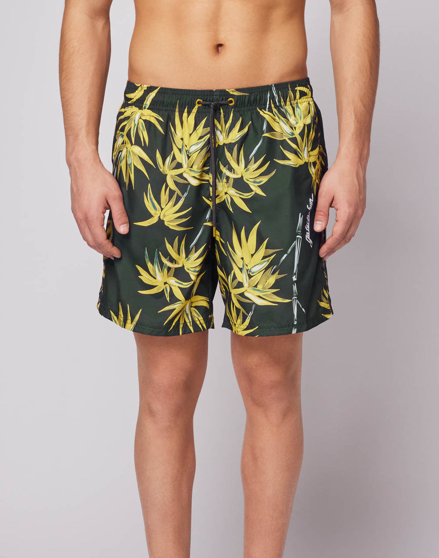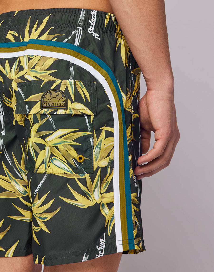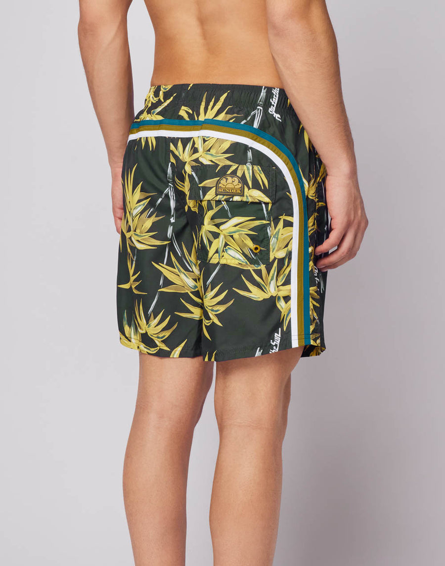 Spirito green, ispirazione floreale e l'iconico arcobaleno Sundek sul retro fanno di questo costume un must have del beachwear: realizzato in tessuto REPREVE® riciclato, ricavato dal riutilizzo delle bottiglie di plastica, questo costume è leggero, resistente e si asciuga rapidamente.