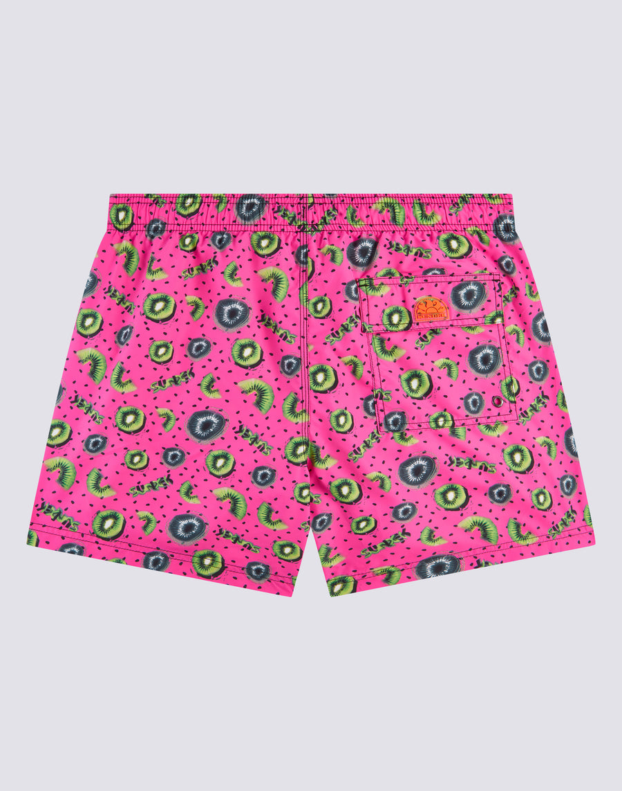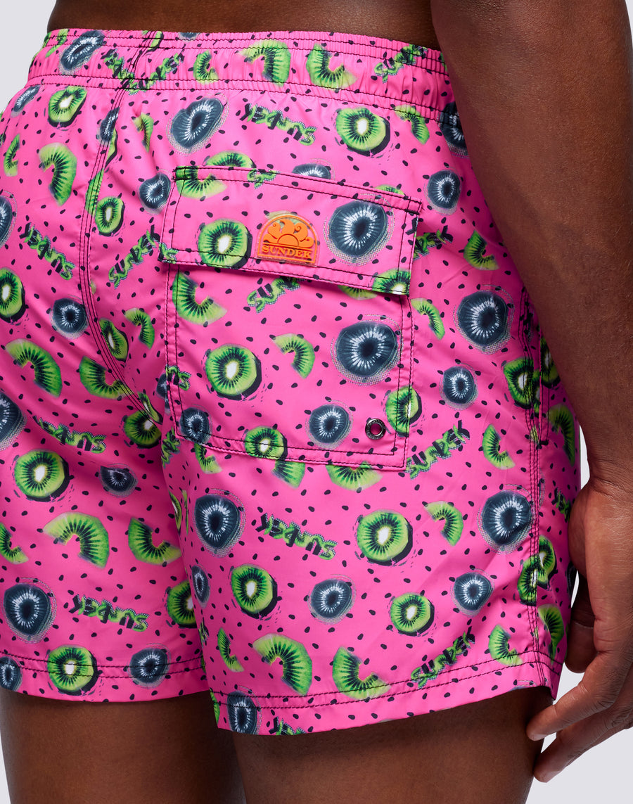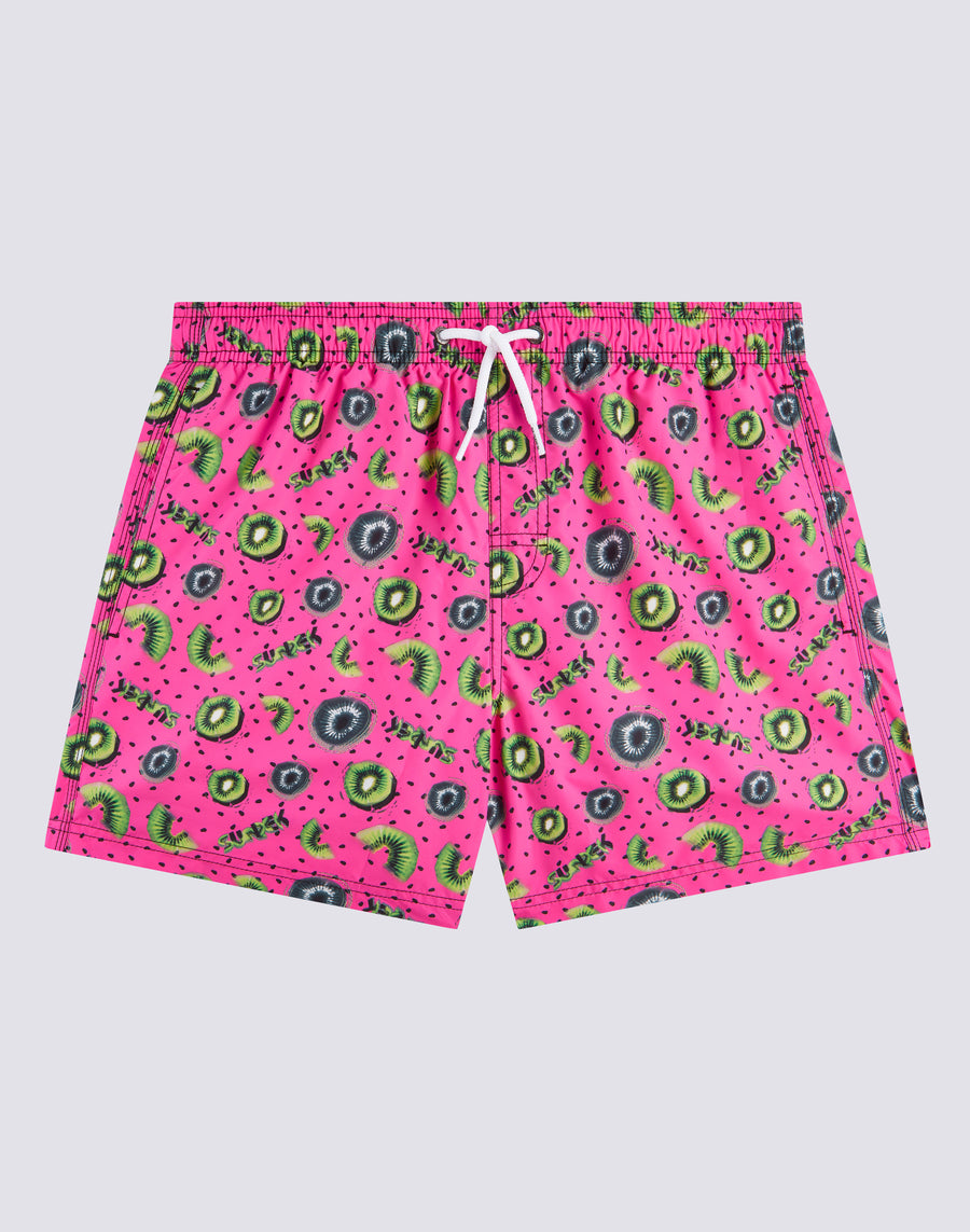 COSTUME DA BAGNO CORTO A VITA ELASTICATA MICROSTAMPA KIWI BOOST
