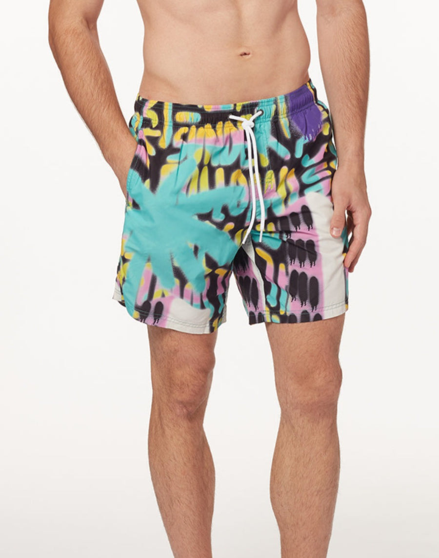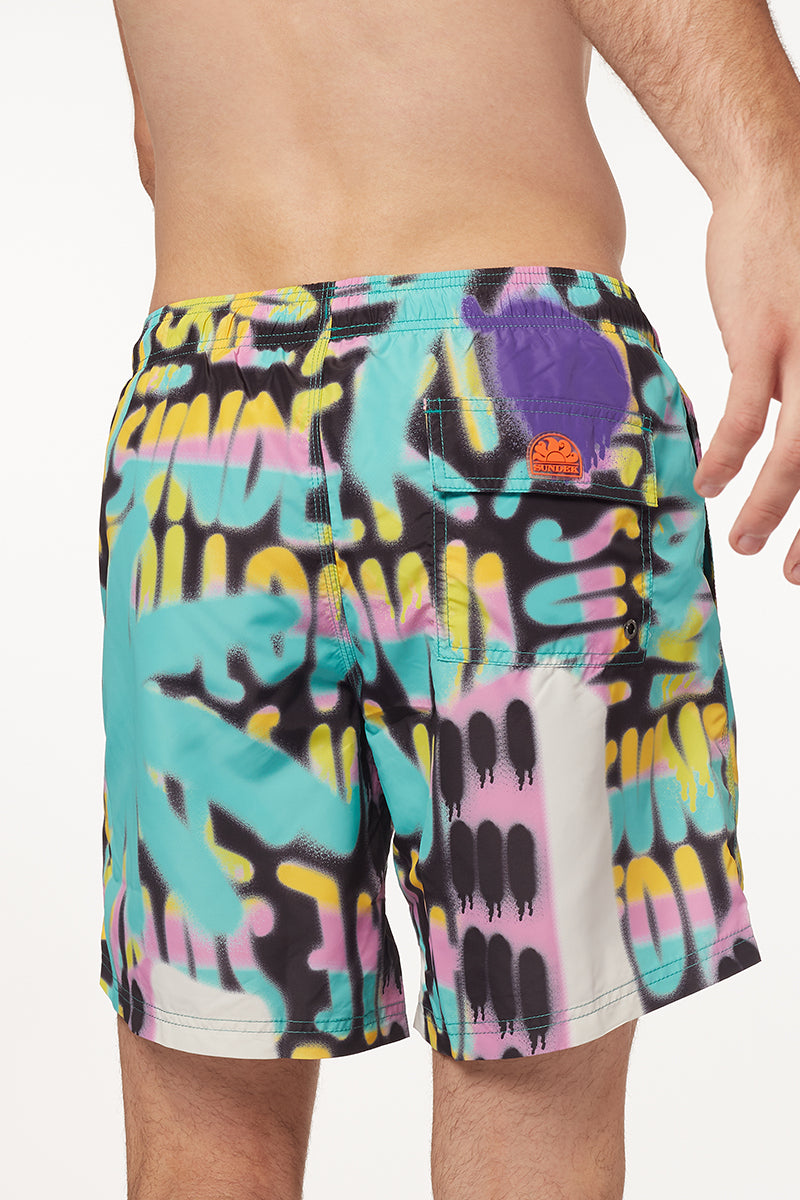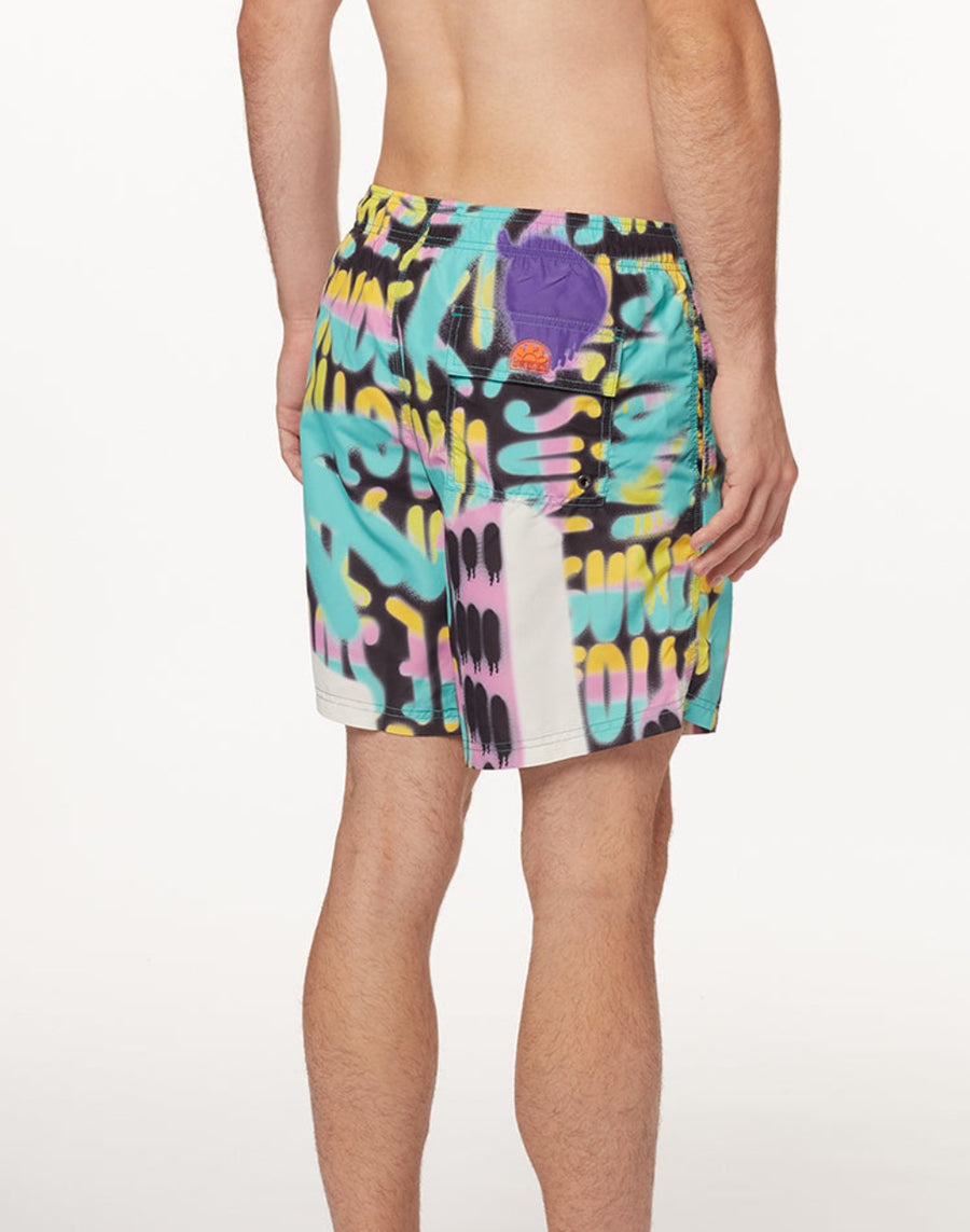 Pronti a cavalcare la prossima onda con questo costume da bagno uomo medio a vita elasticata e stampa Spray palm. Realizzato in leggero poliestere riciclato, garantisce aderenza e comfort grazie alla presenza della coulisse e dell'elastico in vita. Lunghezza 16”/41 cm (in taglia M).