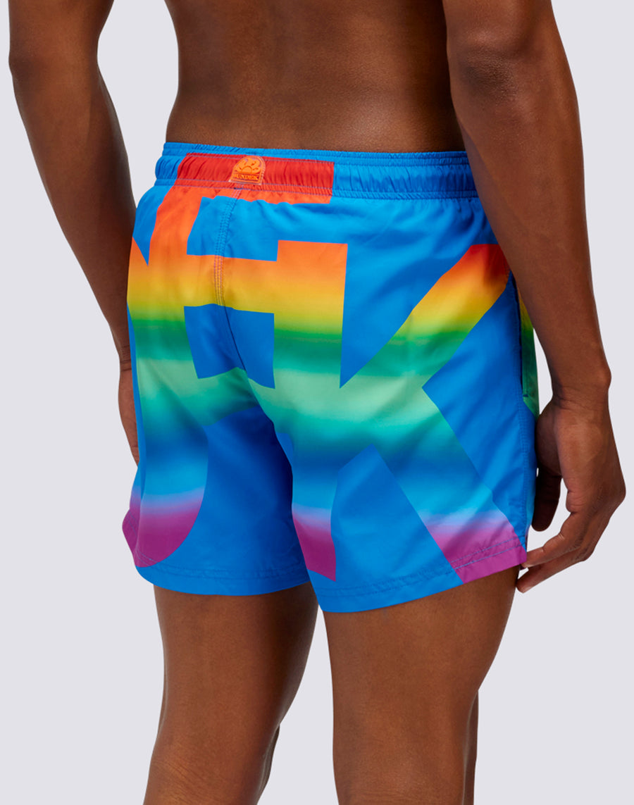Esprimi il DNA Sundek con questo costume corto a vita elasticata con stampa SUNDEK a colori all over. Le cuciture a 3 aghi offrono un'elevata resistenza nel tempo. Tessuto Poliestere riciclato.
