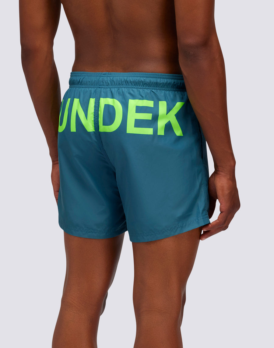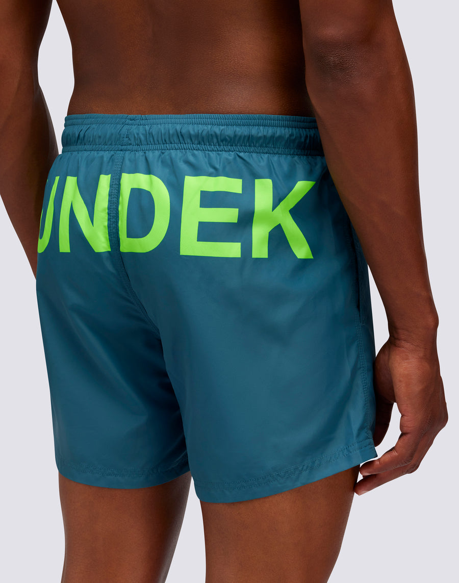 Esprimi il DNA Sundek. Costume corto a vita elasticata a tinta unita con stampa SUNDEK sul retro. Le cuciture a 3 aghi offrono un'elevata resistenza nel tempo. Tessuto Poliestere riciclato.