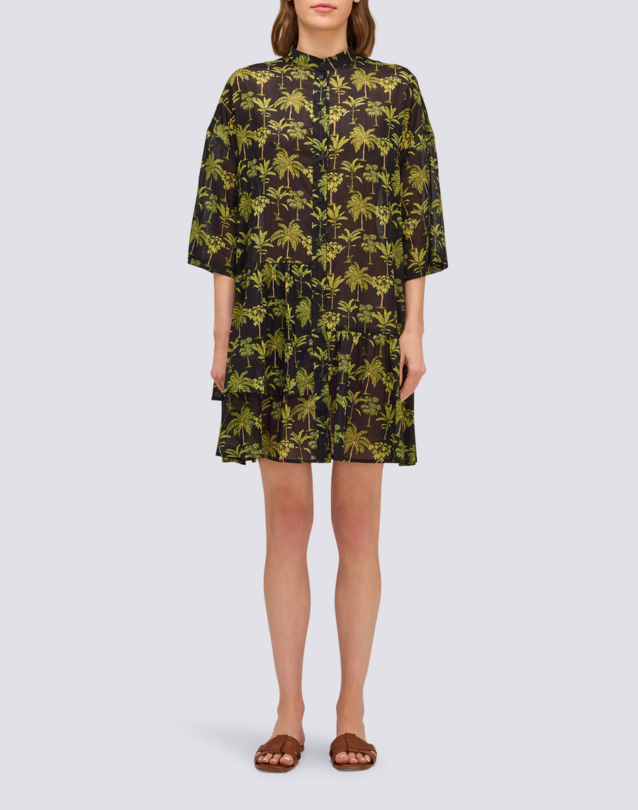 ABITO DONNA CORTO IN VOILE DI COTONE STAMPA BOTANIC