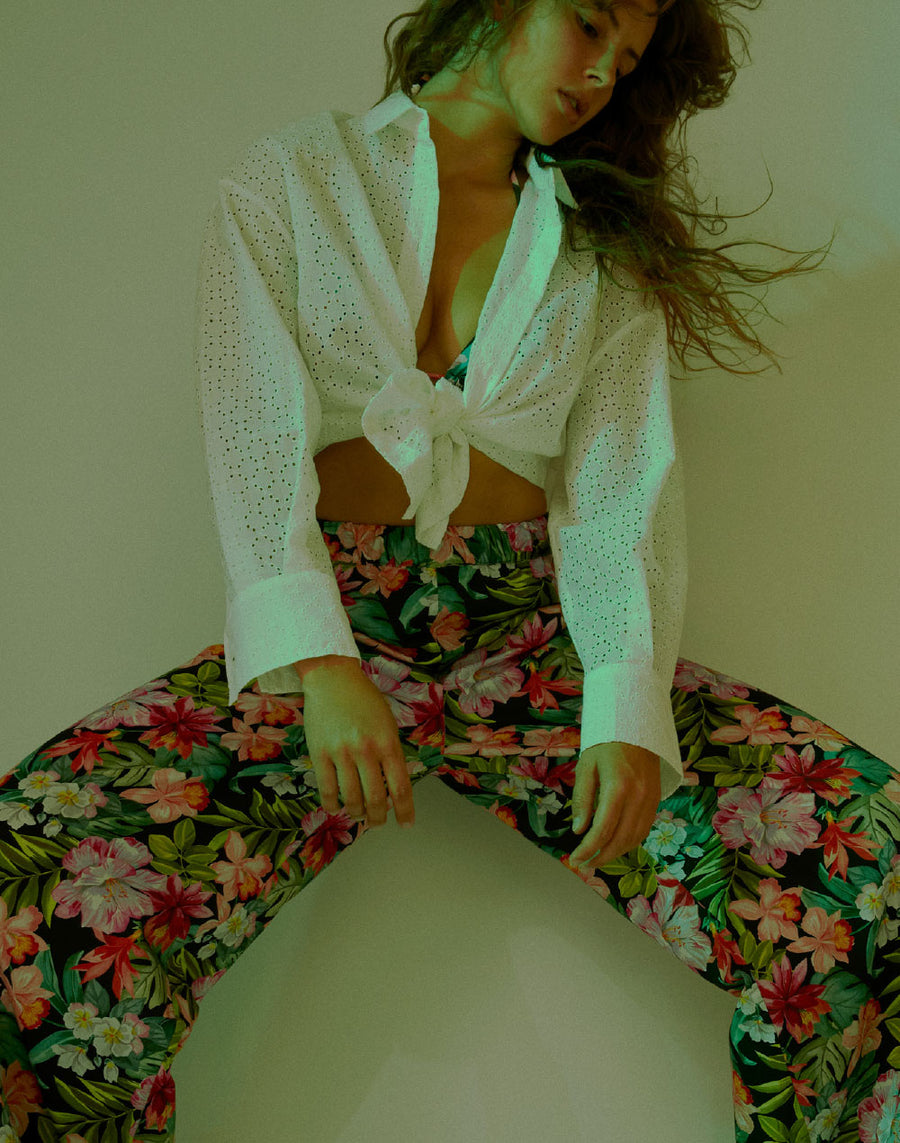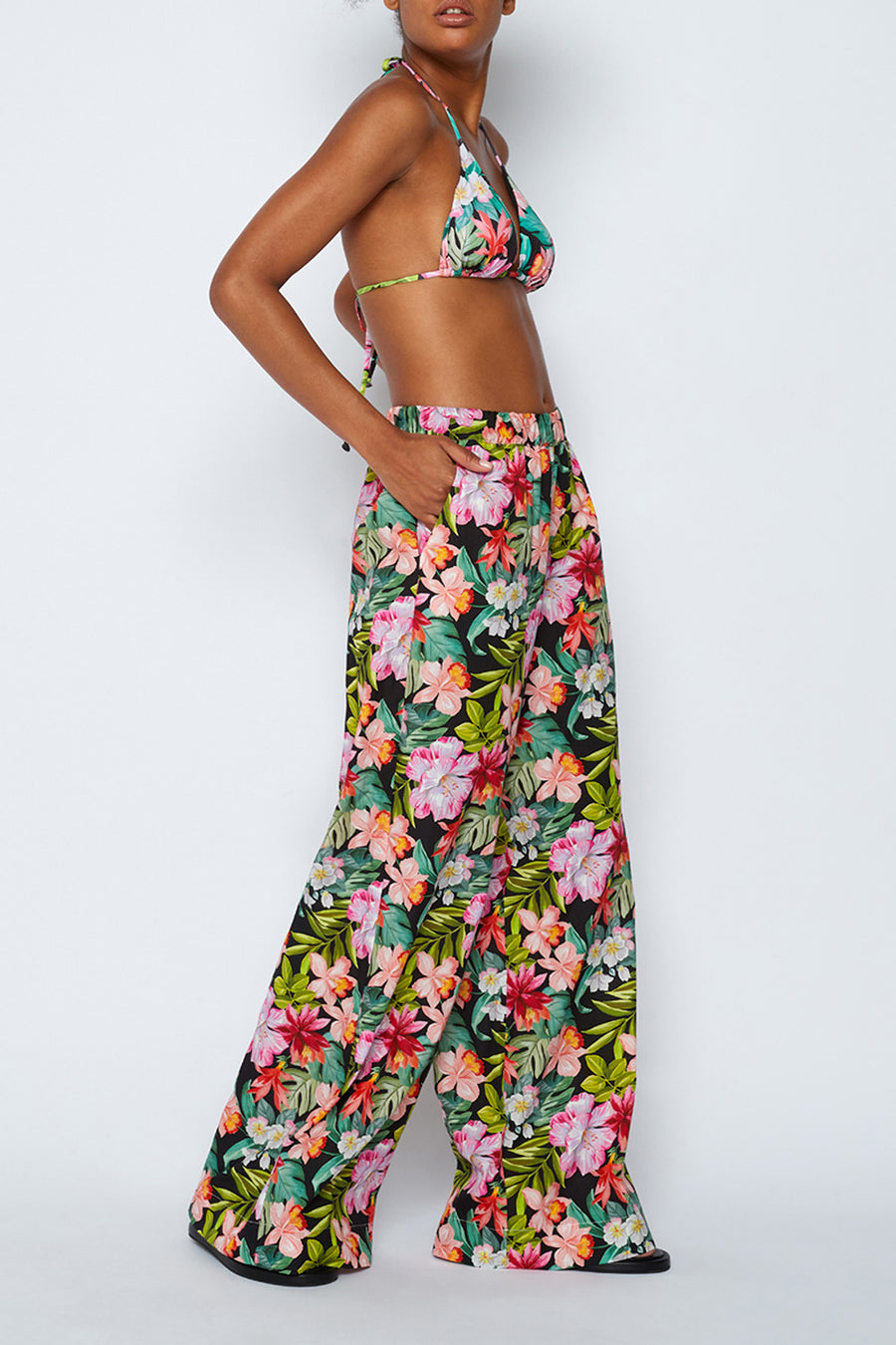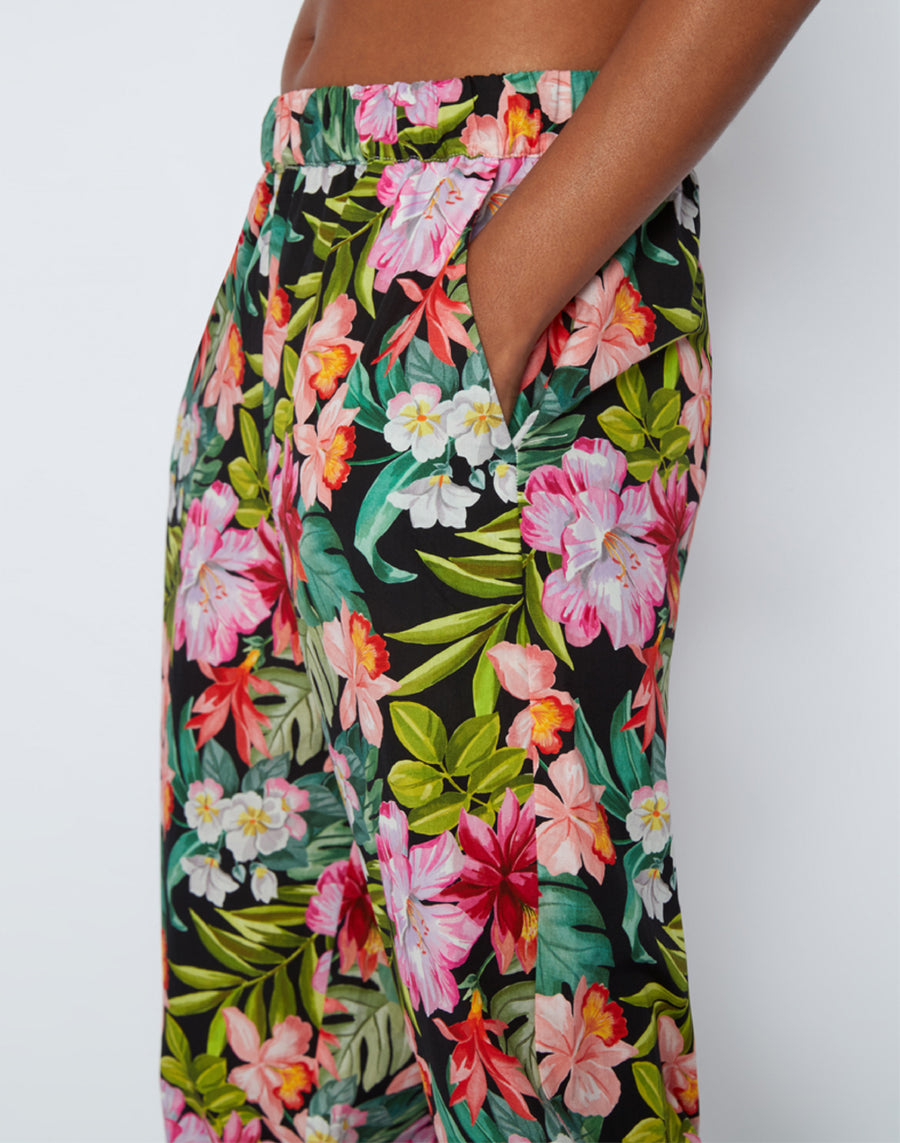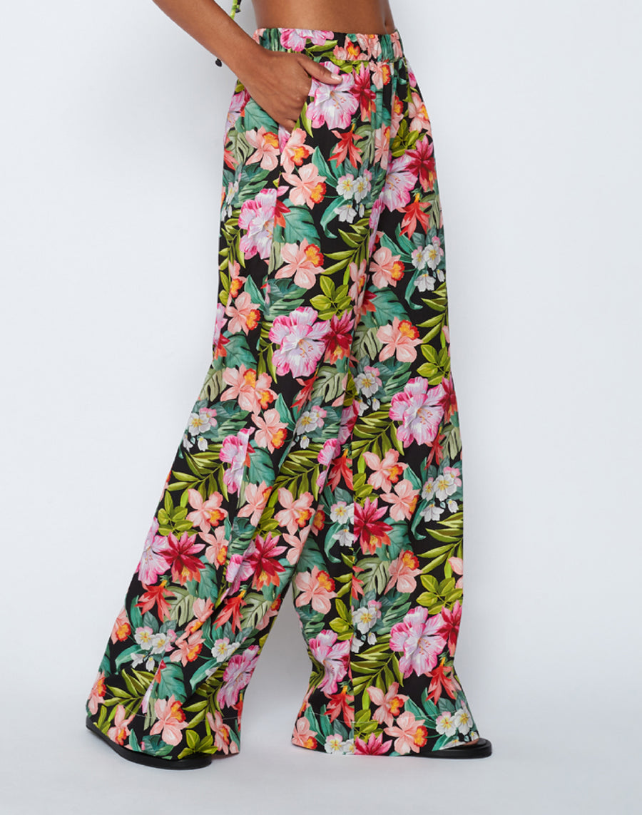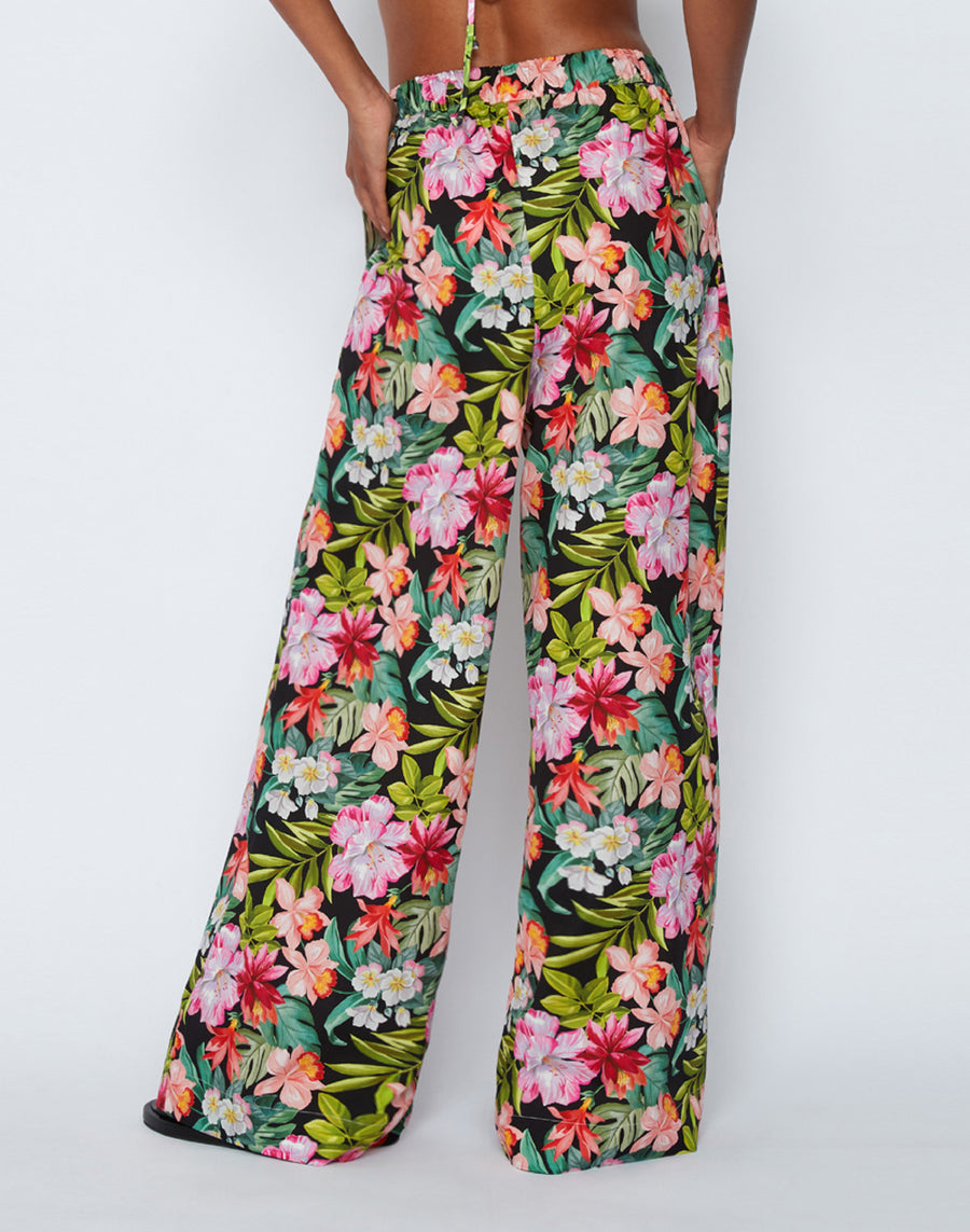 La stampa a tema floreale caratterizza questi pantaloni ampi in morbido cotone. Freschi e confortevoli, sono ideali da abbinare alla camicia in coordinato. Dai vita a look sofisticati e ricchi di stile.