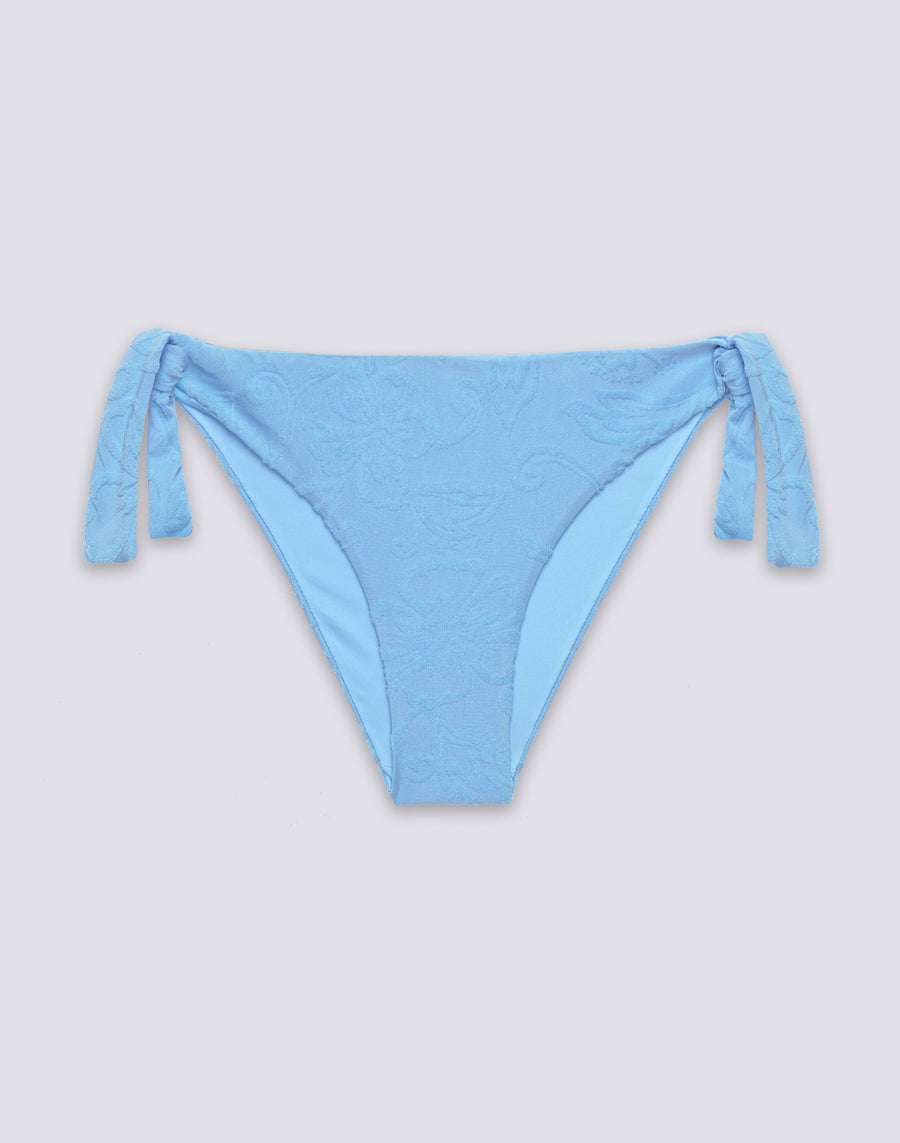Lo slip bikini Bea è realizzato in morbida spugna jacquard con motivo floreale sk23 e presenta regolazione laterale per un fit personalizzato.