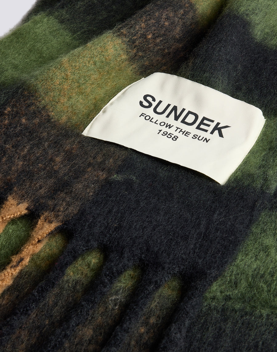 Multicheck patterned scarf with large logo label and fringes, the must-have accessory for winter days.