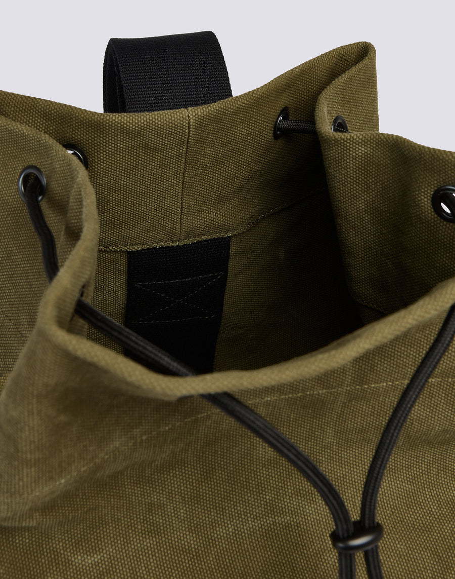 Cotton shoulder bag with drawstring closure, contrasting colour blocks and logo printed on the front. A technical, spacious, essential bag.