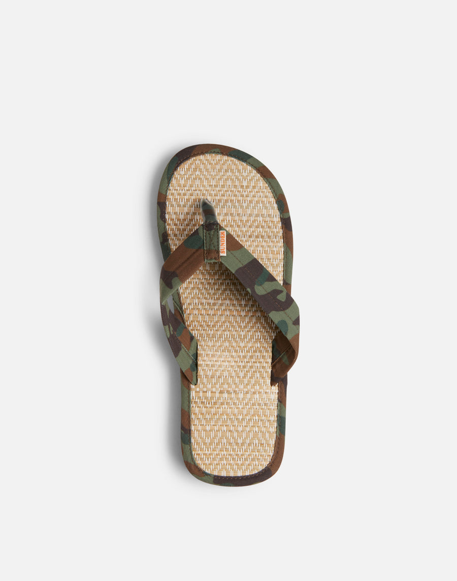 Show off your wildest side with these flip-flops with a camouflage print. The sole is made of rattan and offers considerable comfort. Available numbers: 39-40-41-42-43-44-45-46.
