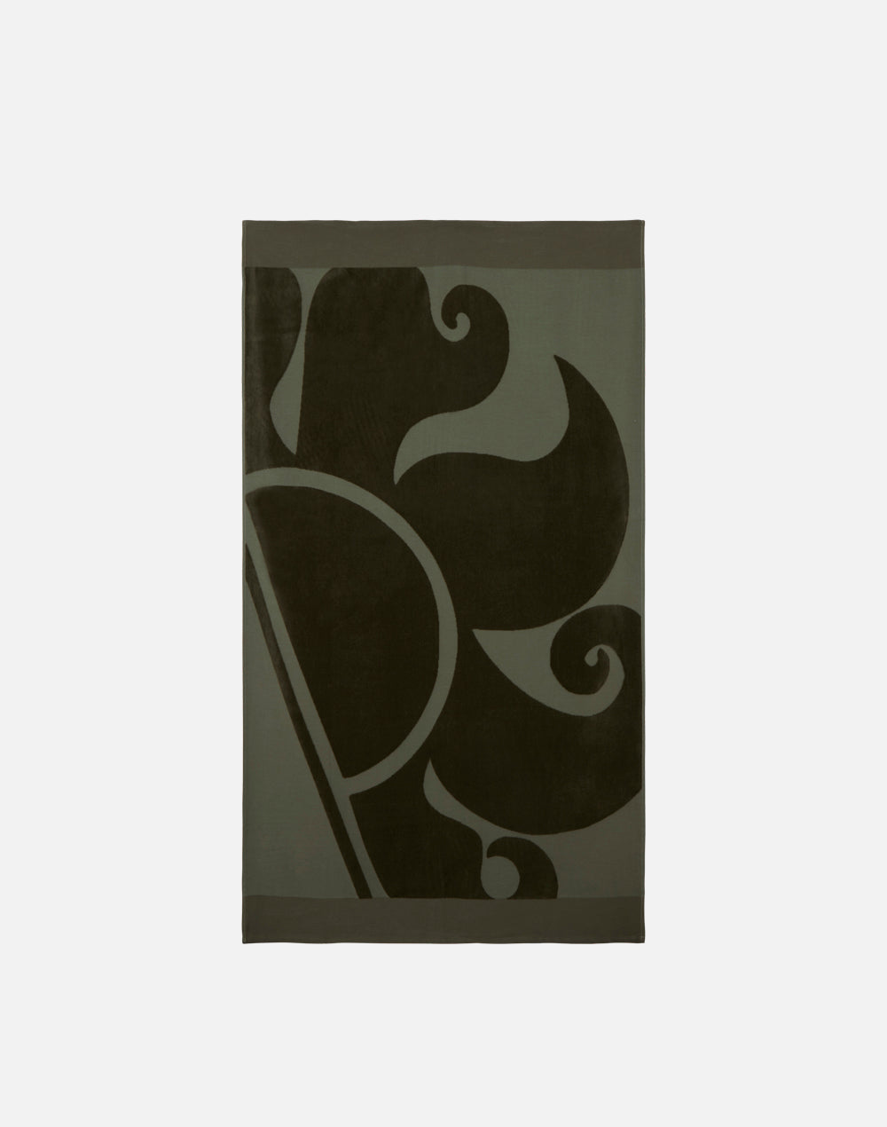 Beach towel in soft jacquard cotton with tone-on-tone embossed logo. Dimensions: 100 X 180 - Weight 440 gr.