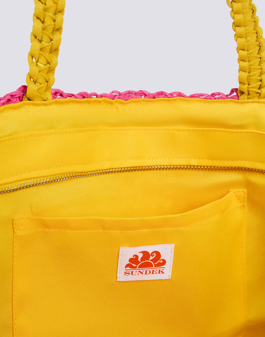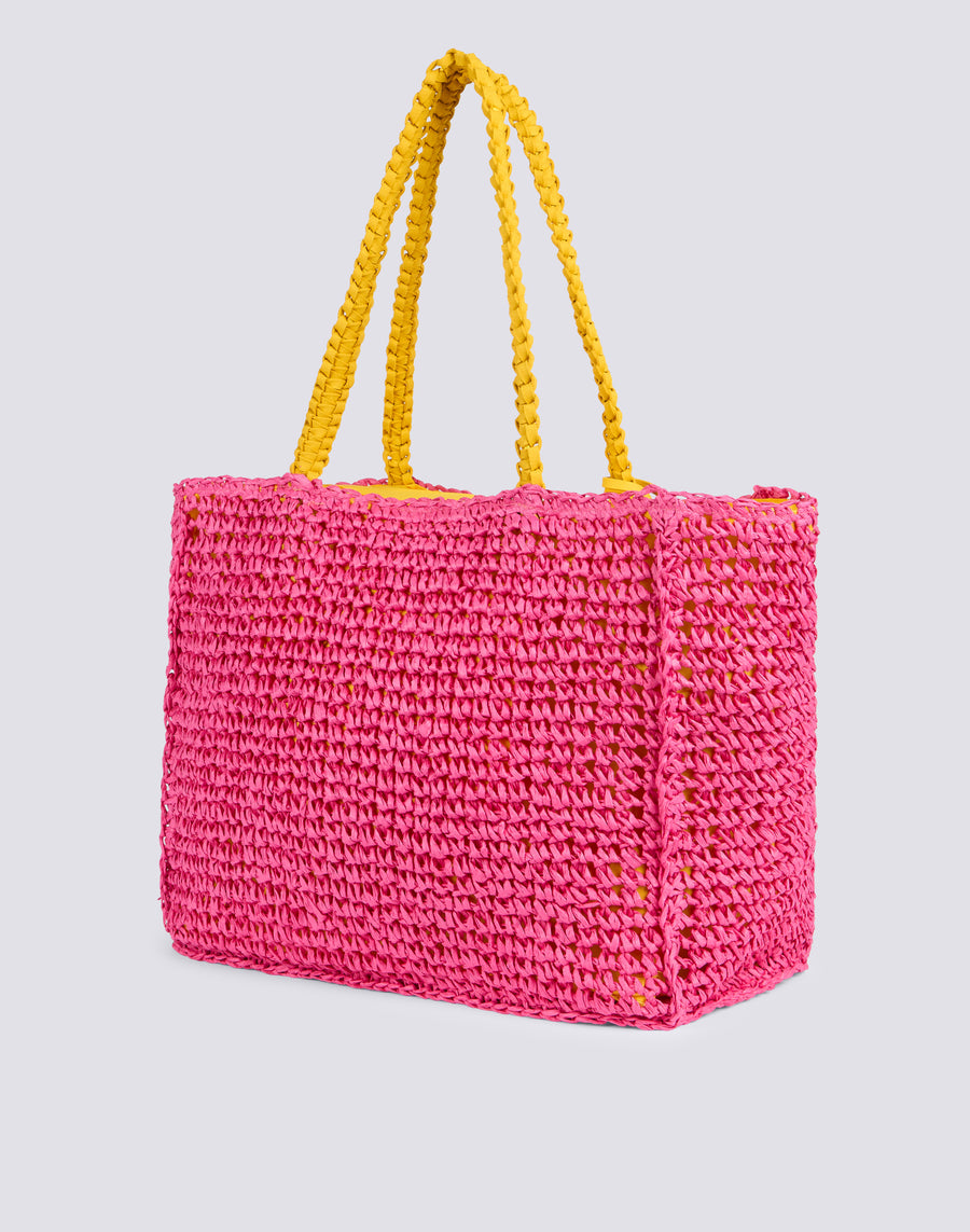 Paper straw shopping bag with terry cloth logo and embroidery on the front. A shopping bag with a simple design, but full of details, that will make you stand out.
