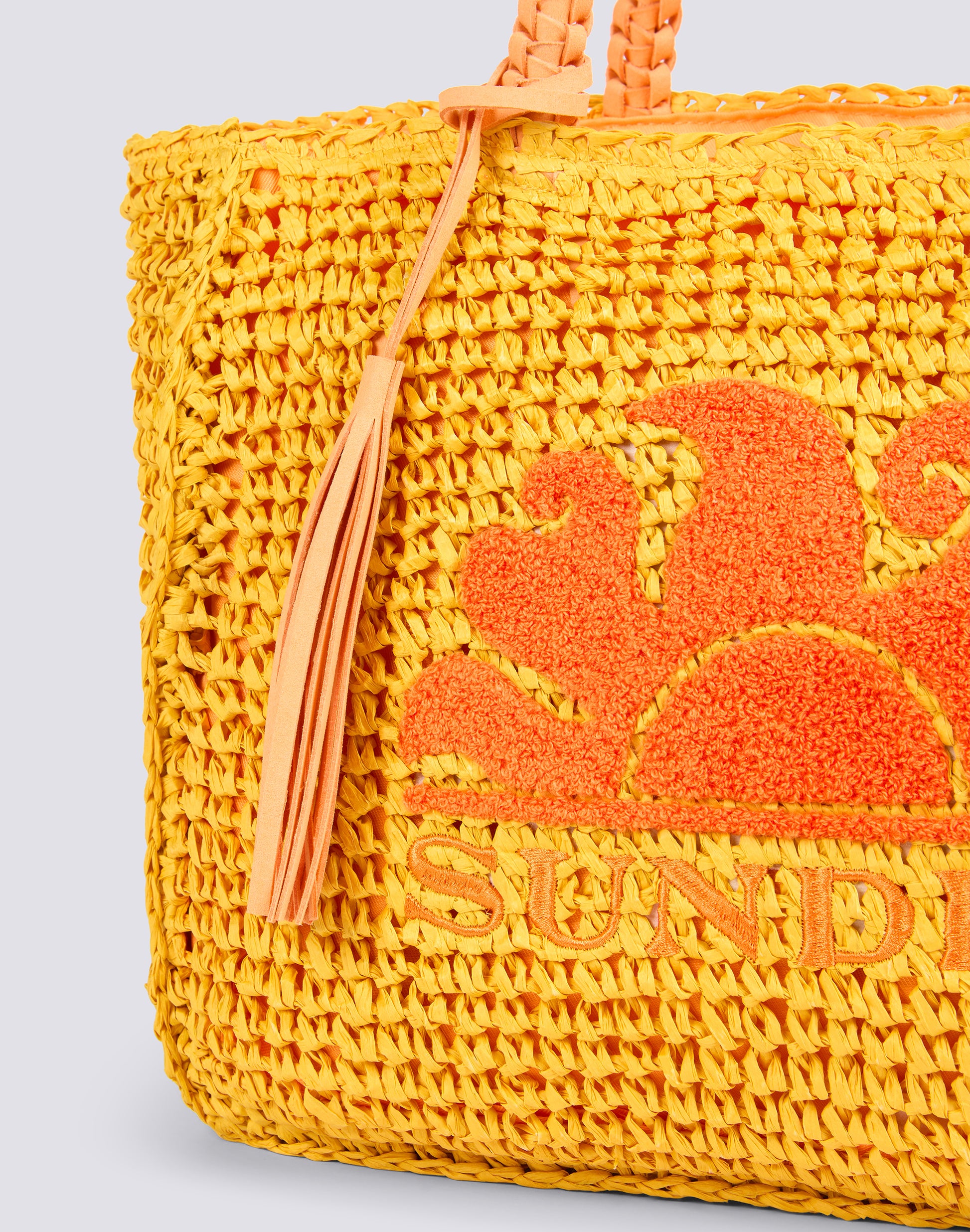 Paper straw shopping bag with terry cloth logo and embroidery on the front. A shopping bag with a simple design, but full of details, that will make you stand out.