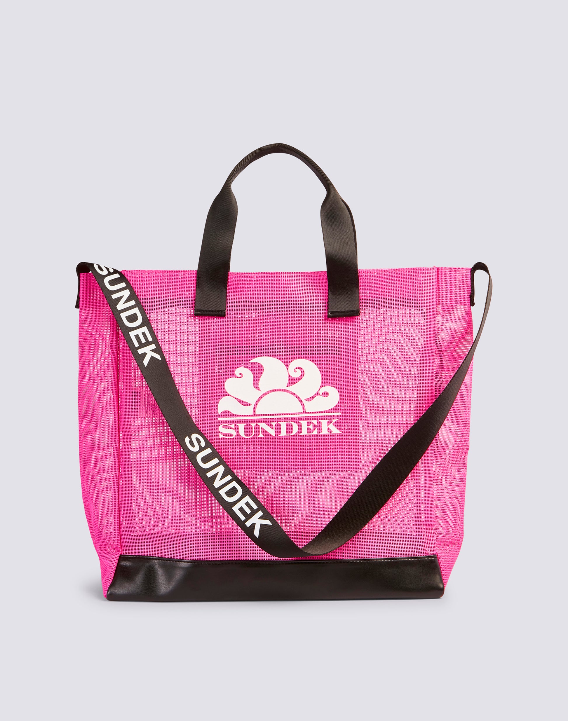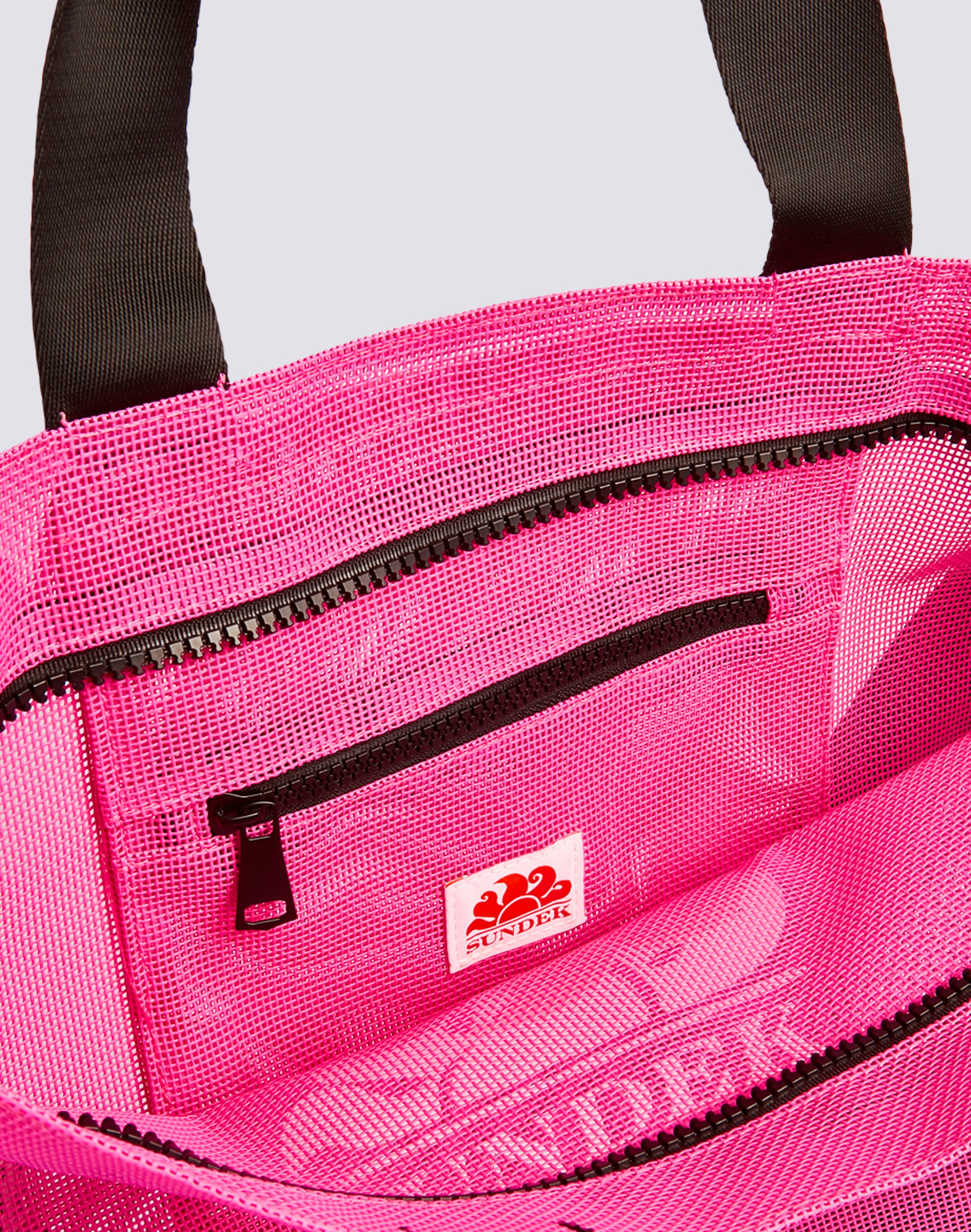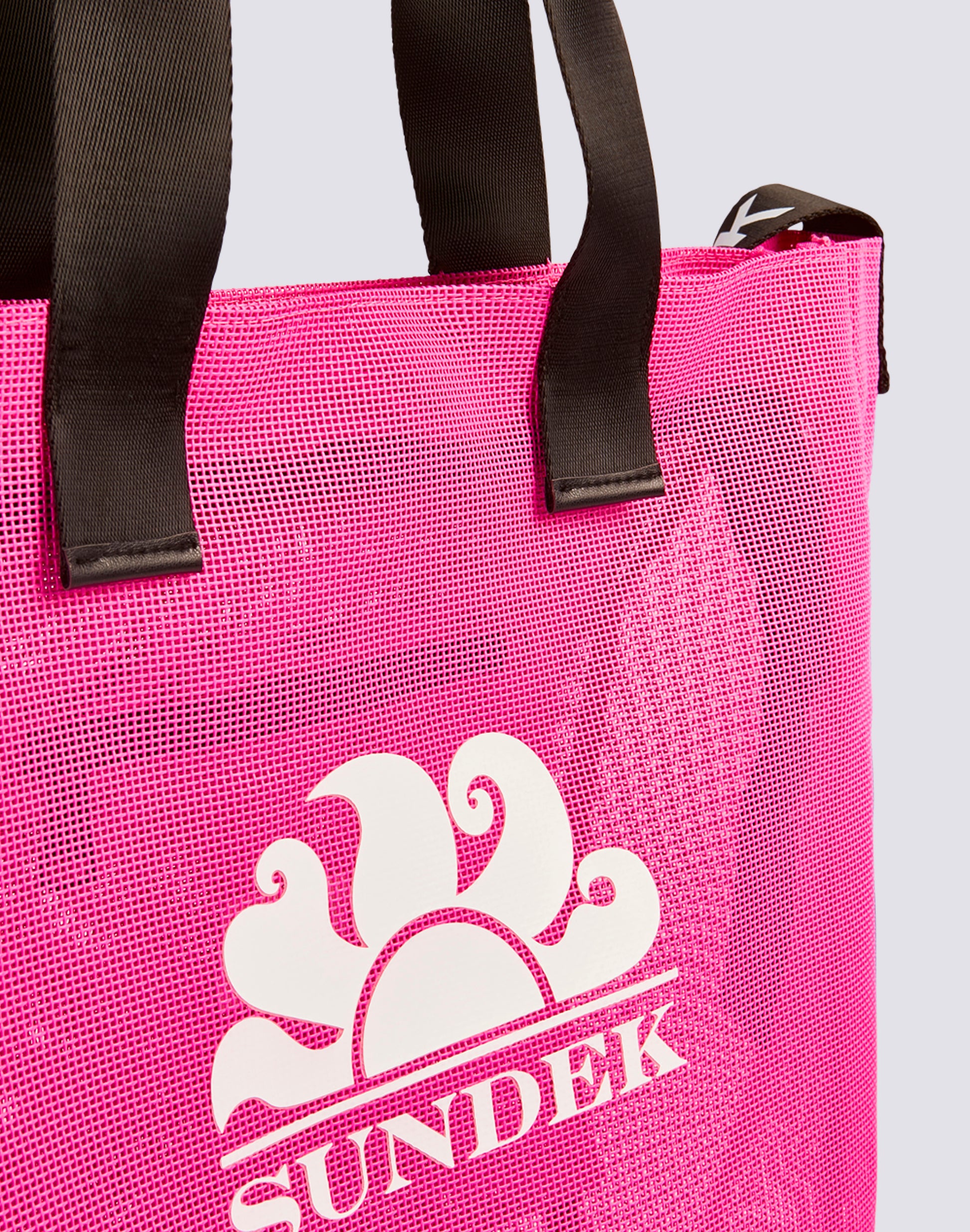 Mesh beach bag with large Sundek logo. Roomy and ideal for carrying everything you need for a day at the beach.