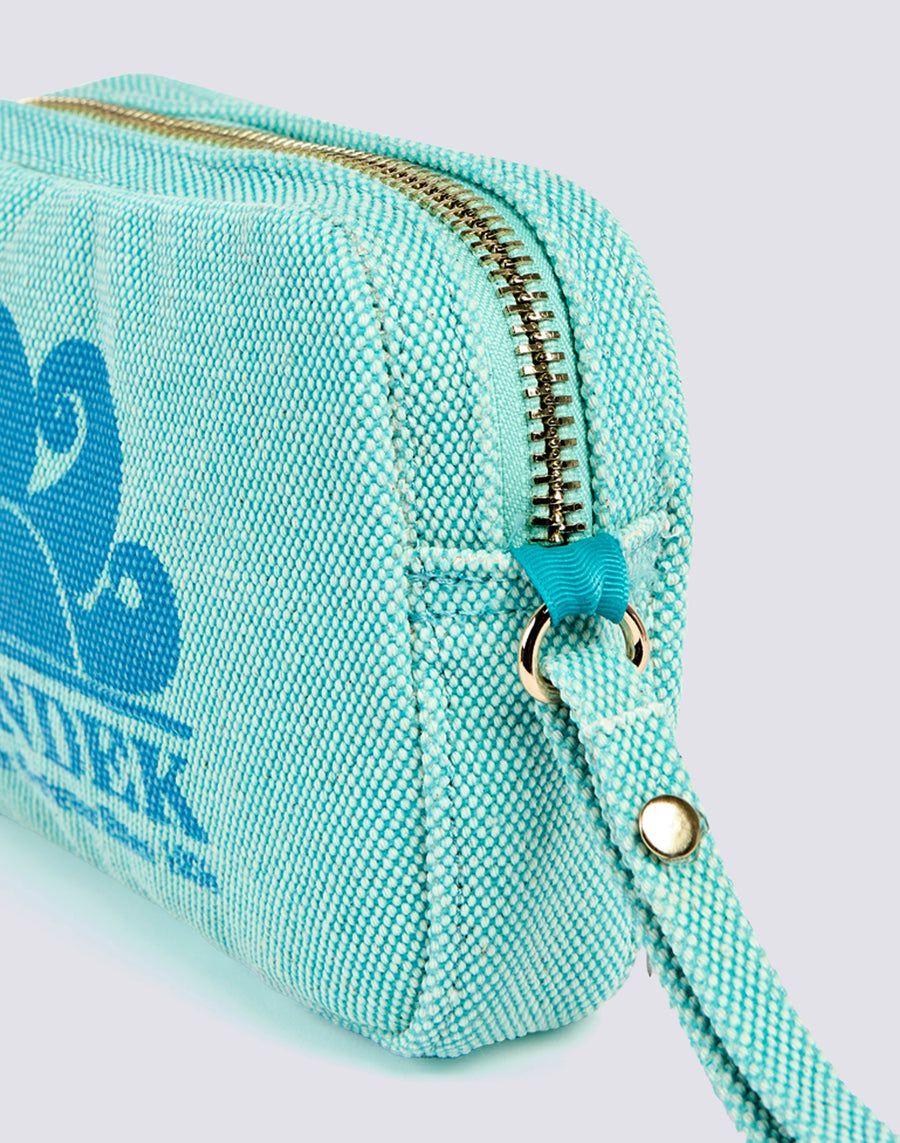Stone washed effect clutch bag with zip and strap hole. Always have it with you to carry everything you need.
