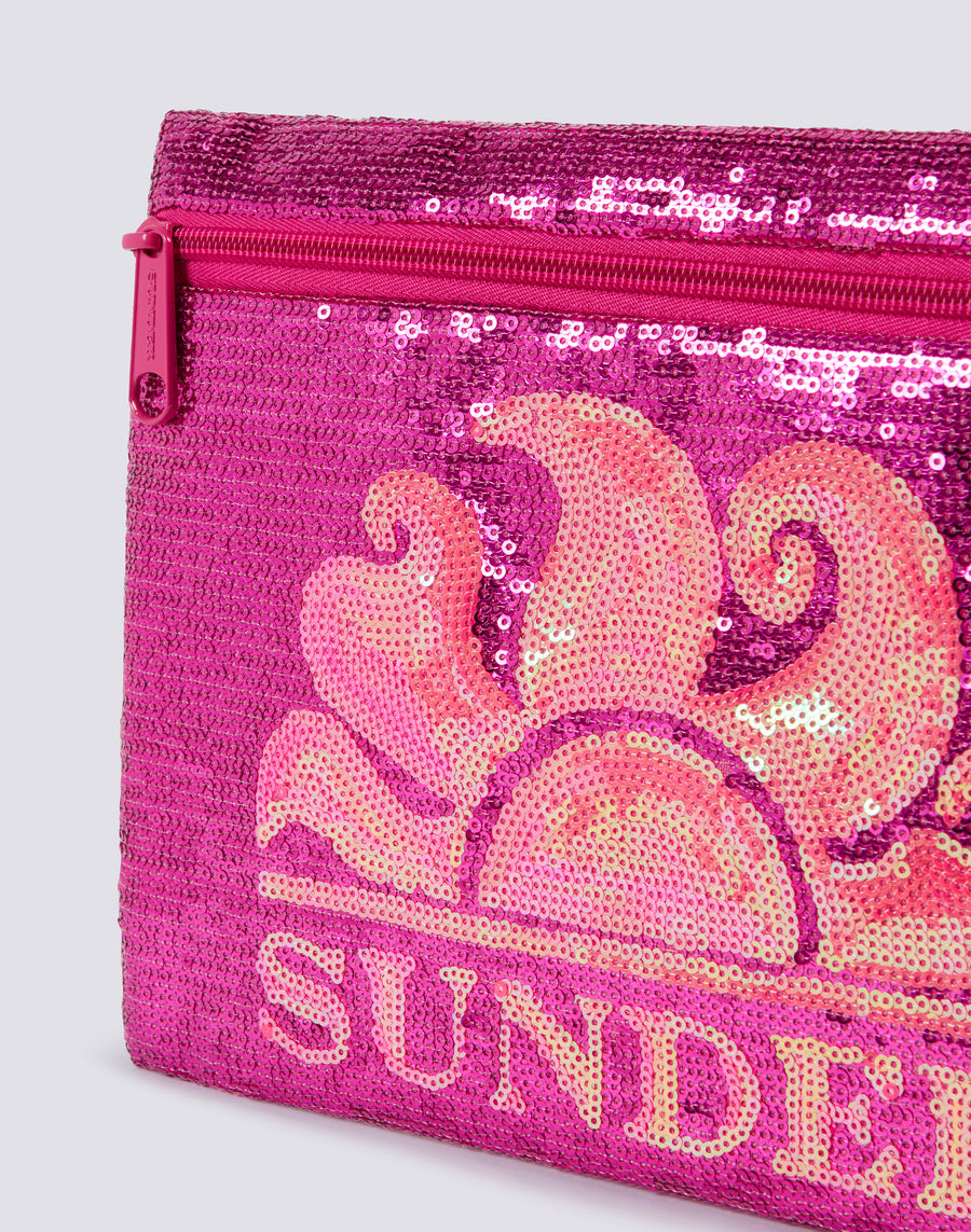 Sophisticated sequin clutch bag to always have the essentials with you.