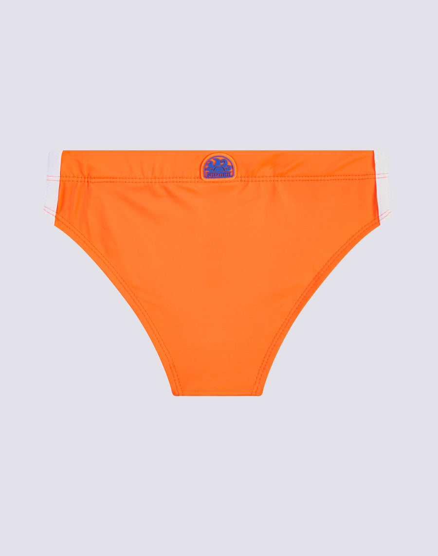 Immerse yourself in the colours of the rainbow. Child's swimming trunks in regenerated Econyl nylon.