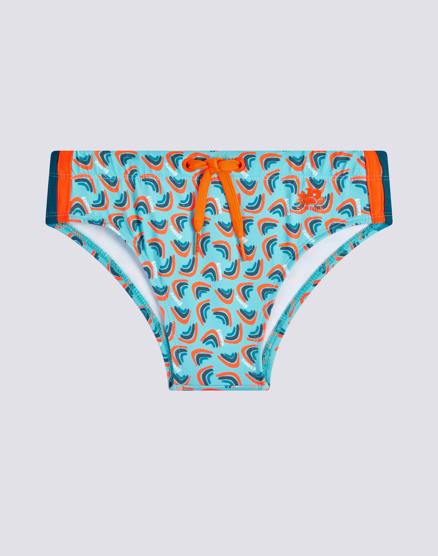 Children's briefs with colourful print, drawstring and elasticated waist for a better fit. The sides feature vertical stripes in 3 colours. Outside length 2.5"/6cm (in size 6 years).