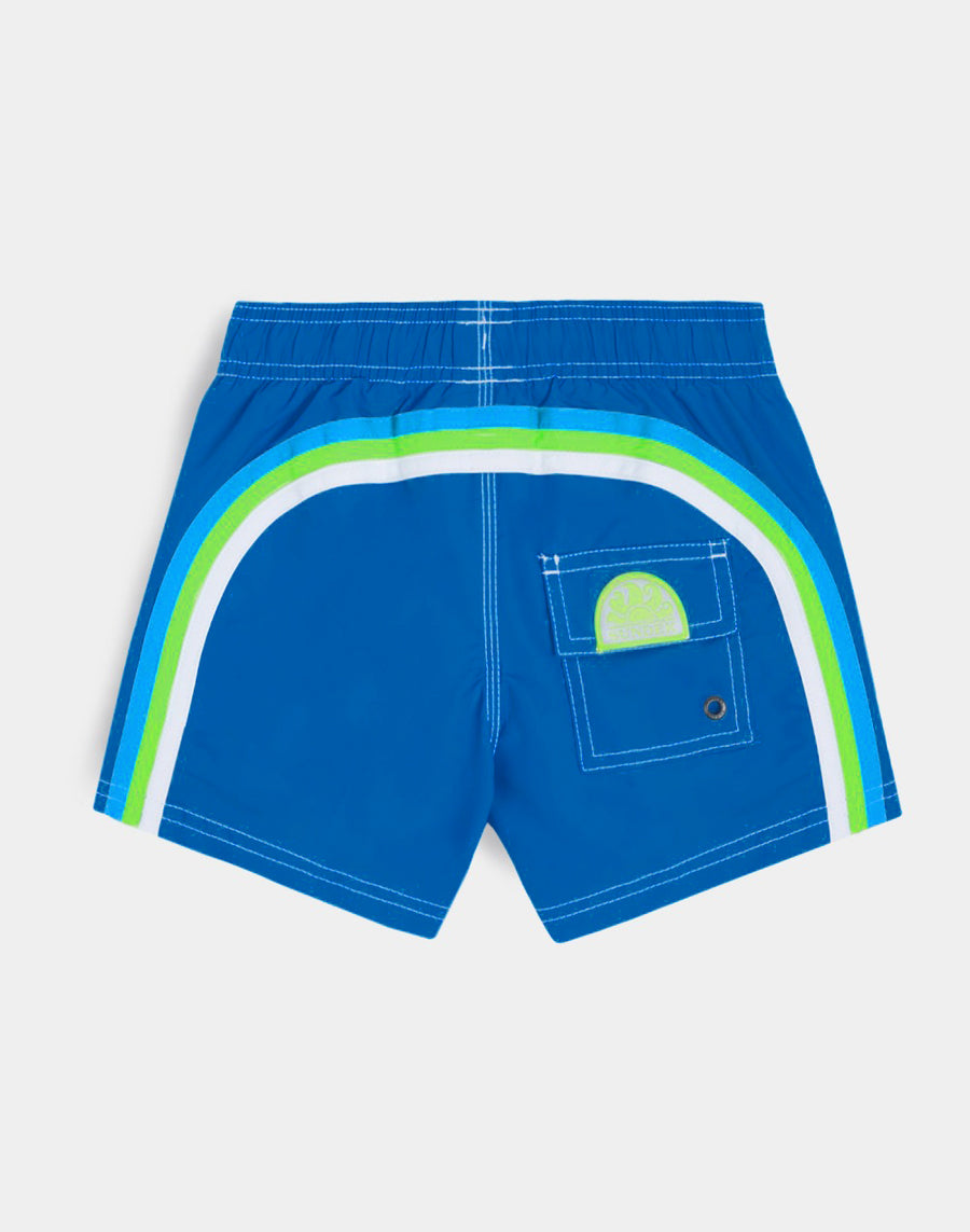 Intense color and hyper-comfortable quick-drying fabric for these baby boy beach shorts. A model that will accompany your child in his many activities on vacation, perfect for moving and playing in complete freedom. is made of our historic nylon-taffeta fabric and constructed with three-needle stitching that makes it durable over time. To pack year after year.