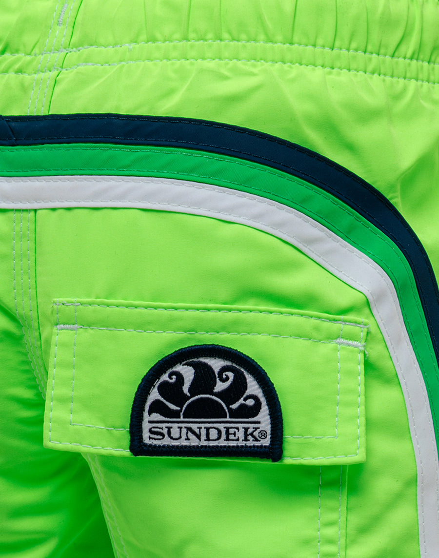 These boys' swim shorts feature intense colours and a super-comfortable, quick-drying fabric. A style that will accompany your little boy in all his holiday activities, perfect for moving around and playing in complete freedom. Made from our classic nylon taffeta fabric and constructed with three-needle stitching for durability. Pack them in your suitcase year after year.