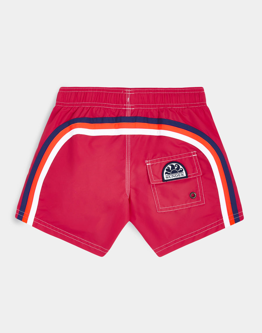 Intense color and hyper-comfortable quick-drying fabric for these baby boy beach shorts. A model that will accompany your child in his many activities on vacation, perfect for moving and playing in complete freedom. is made of our historic nylon-taffeta fabric and constructed with three-needle stitching that makes it durable over time. To pack year after year.