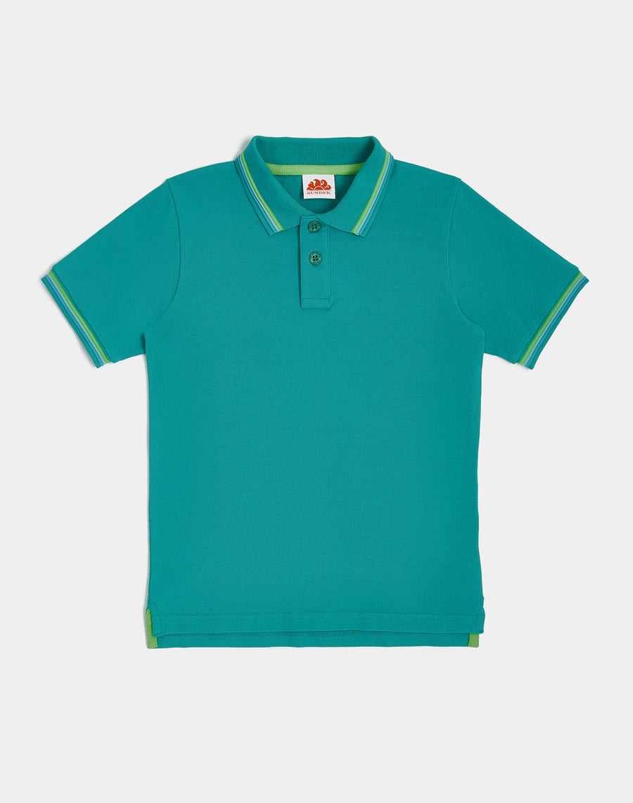 An elegant and charming polo shirt in comfortable soft cotton piqué: a must-have addition to every kid's wardrobe, it is perfect for countless occasions. Made from plain soft cotton piqué fabric, the timeless design is finished with tricolour trim for an extra touch of character.