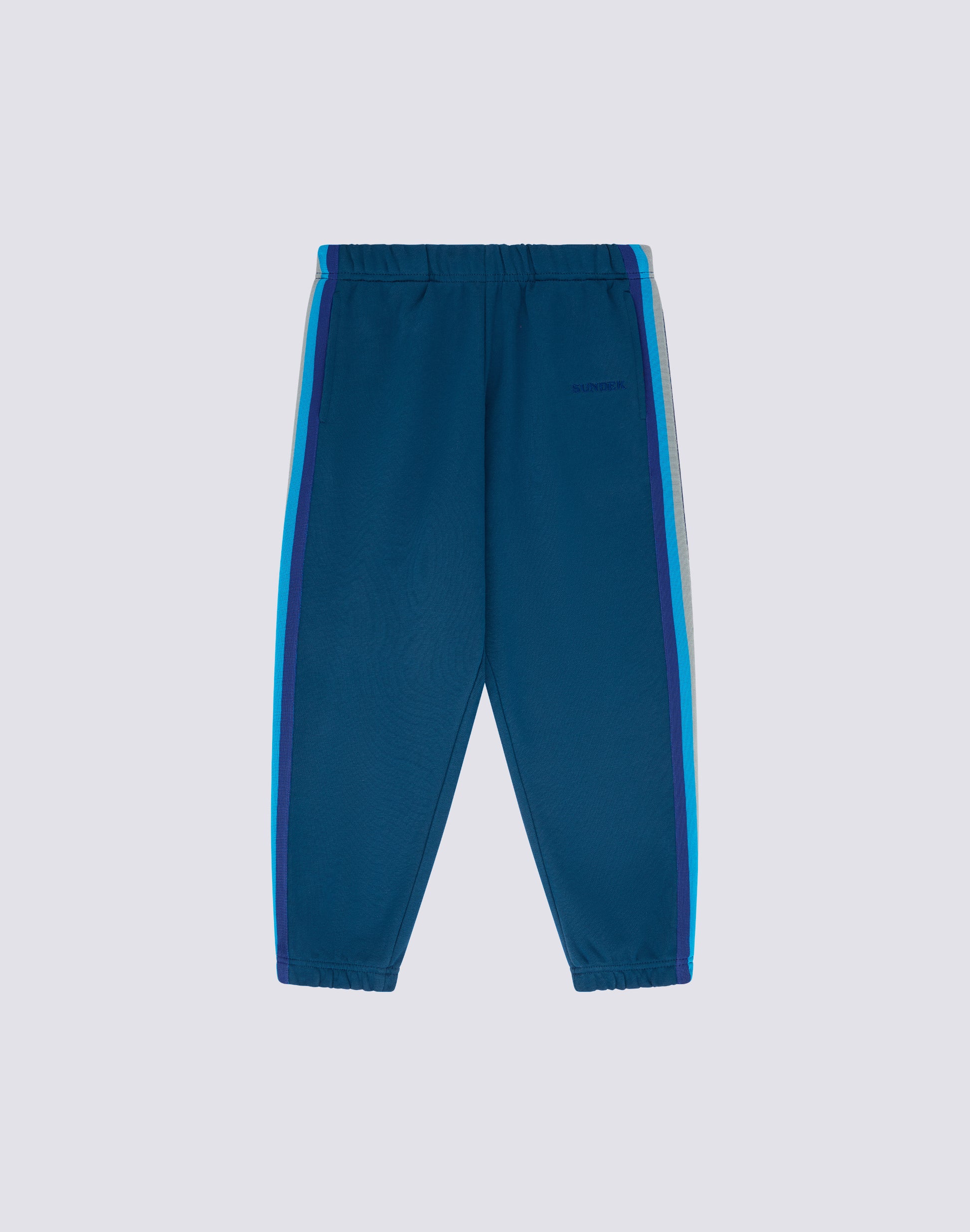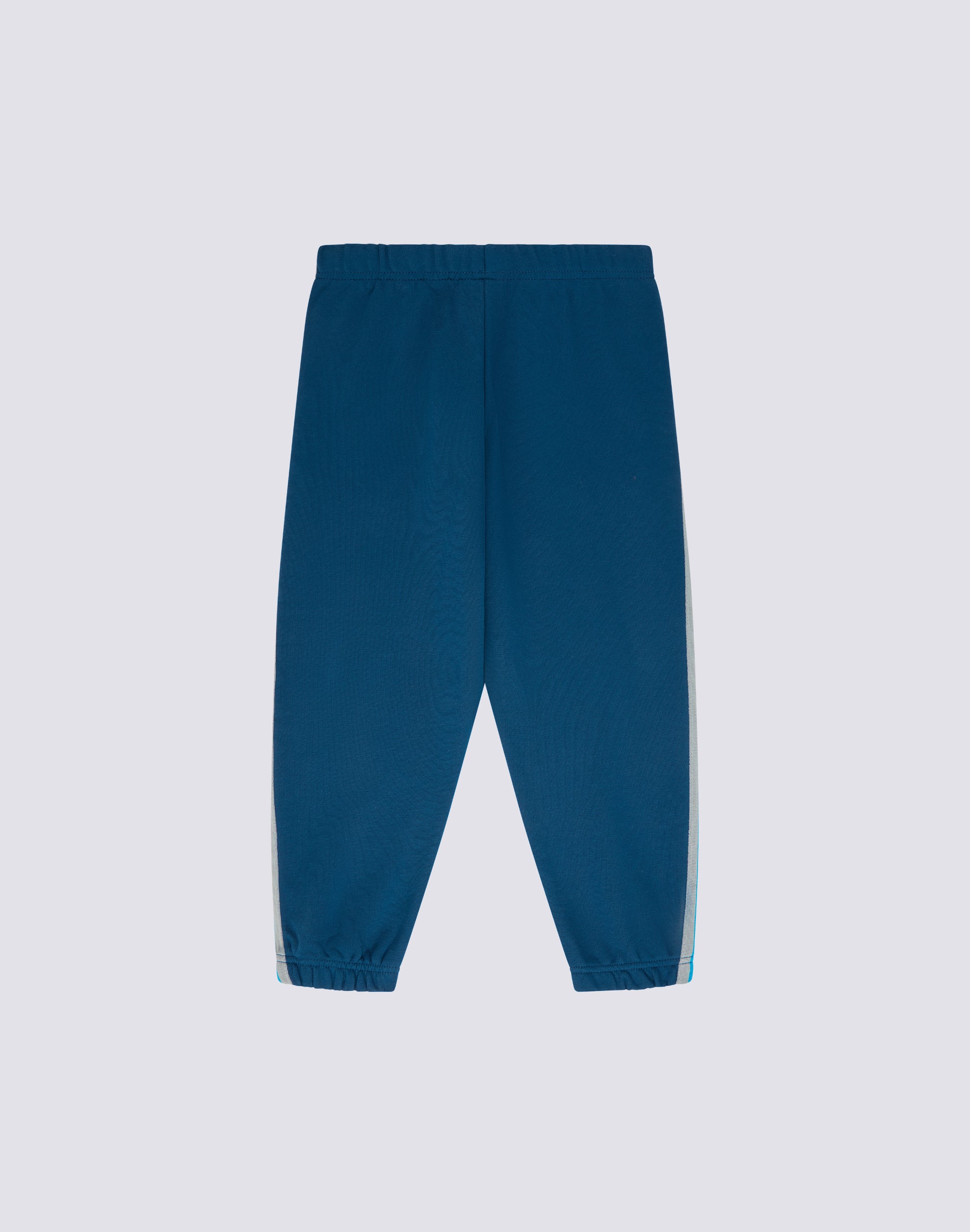 Children's sports trousers with tricolour rainbow detail on the side. To be worn in combination with the matching sweatshirt.