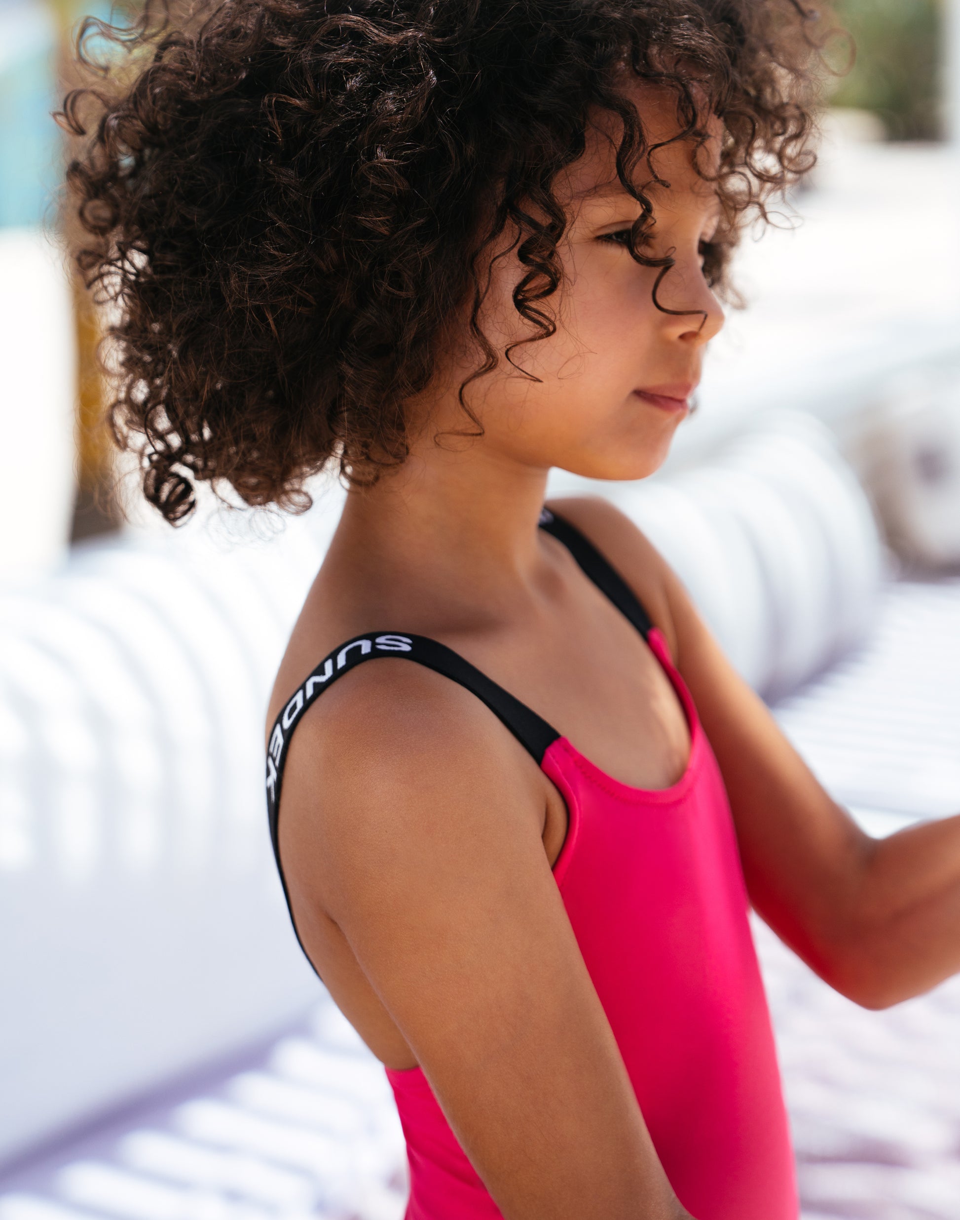 For young girls who love one-piece swimsuit that combine a regular cut with a super modern and sporty character, this is the ideal model. The elastic logo contrasting with the plain colour of the swimming costume creates a play of colour tones.