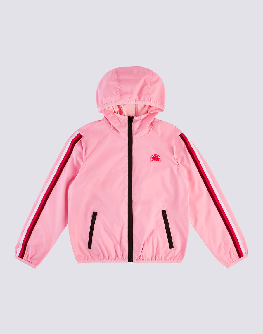 This lightweight and windproof unlined jacket, fastened with a zip and equipped with a hood, is a versatile option, designed to withstand the changing weather. Perfect for young athletes or little ones who love a sporty look. The rainbow details on the sl