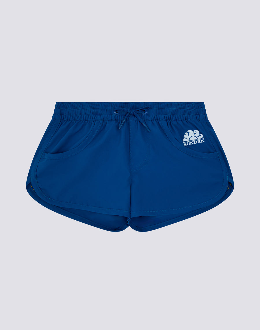 This is the mini version of the Margate women's swimsuit. Lightweight and comfortable, it has a low-rise elasticated waist with drawstring. Made from eco-friendly Repreve® fabric, it can also be worn over a one-piece swimsuit or bikini bottoms.