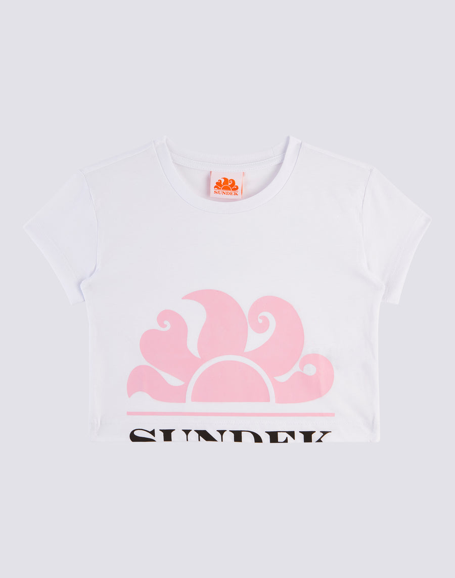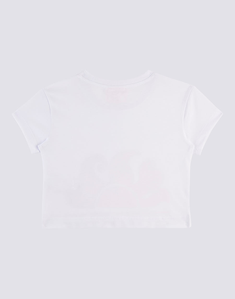 Cropped girl's T-shirt to wear over jeans or skirts. An essential model for your little girl's wardrobe