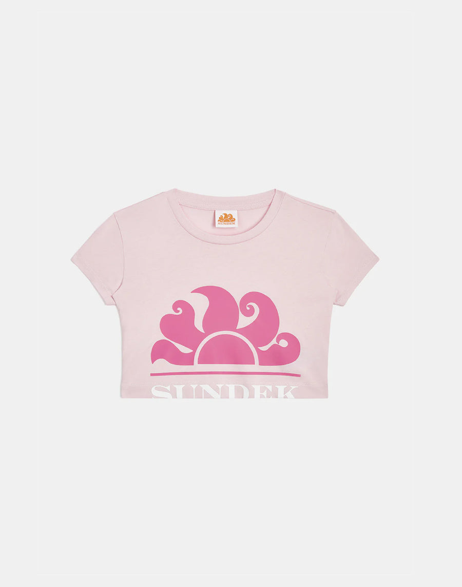 Cropped girl's T-shirt to wear over jeans or skirts. An essential model for your little girl's wardrobe