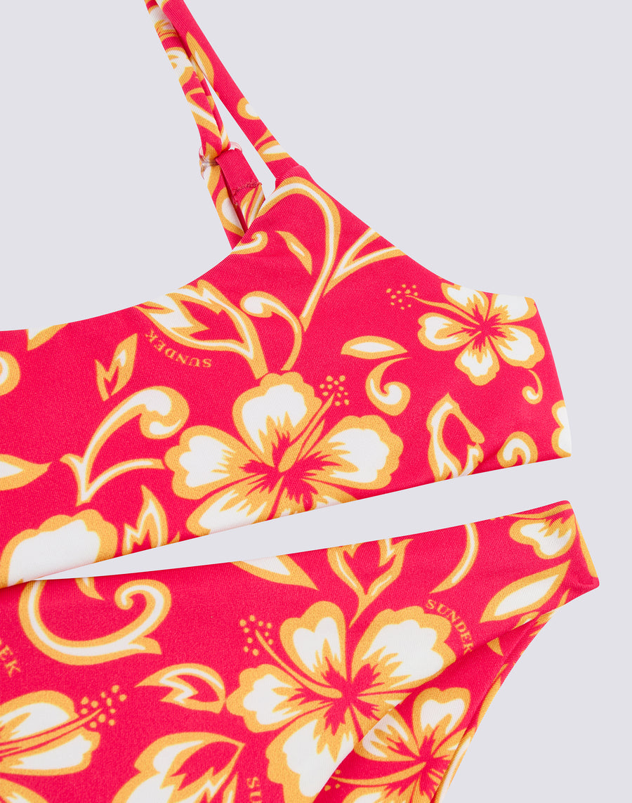 Add a splash of colour to your summer with our SK23 girl's print bikini. Perfect for days at the beach and fun, this swimming costume is made with a colourful floral print.