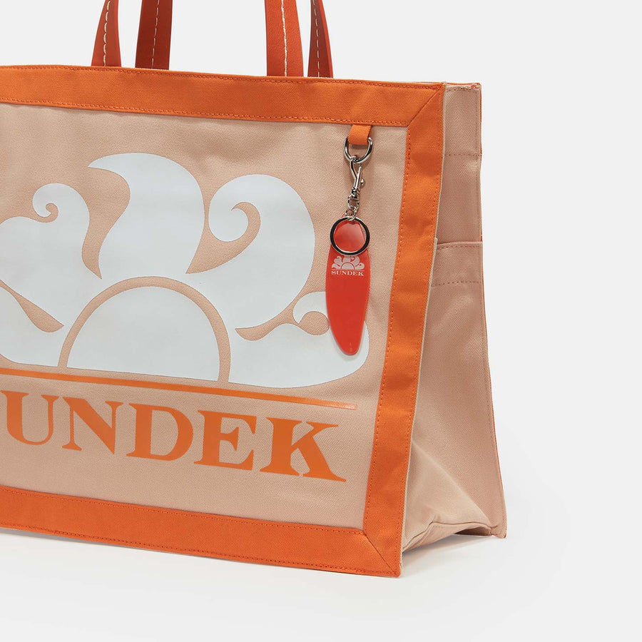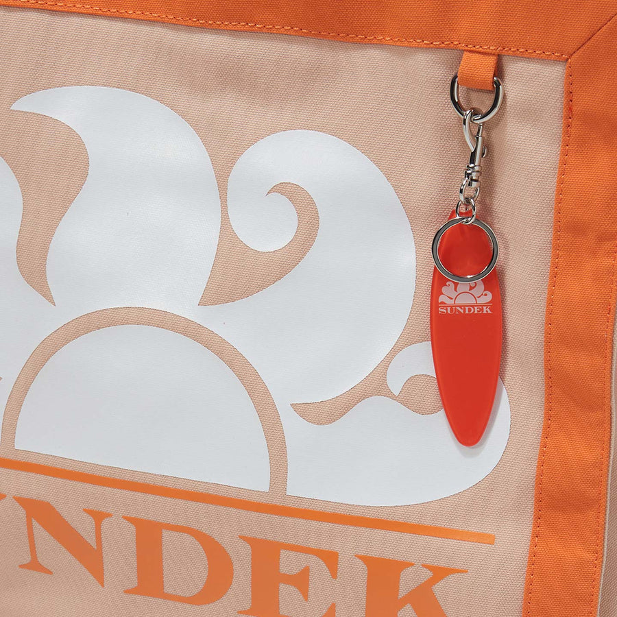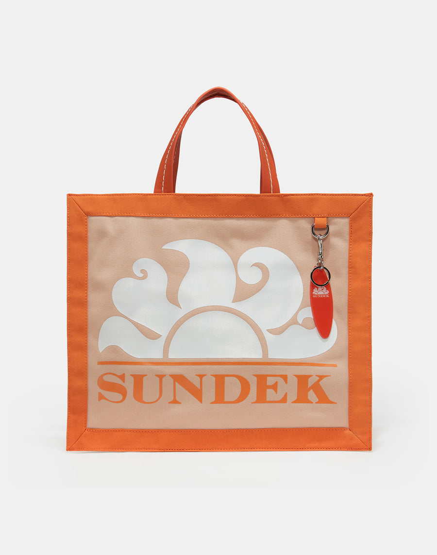 Canvas beach handbag with a printed logo. Large and spacious with an inside pocket and zip. Iconic surfboard charm