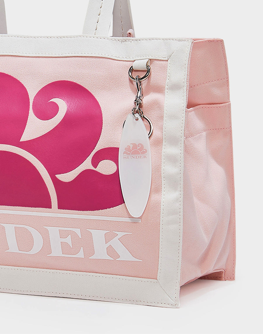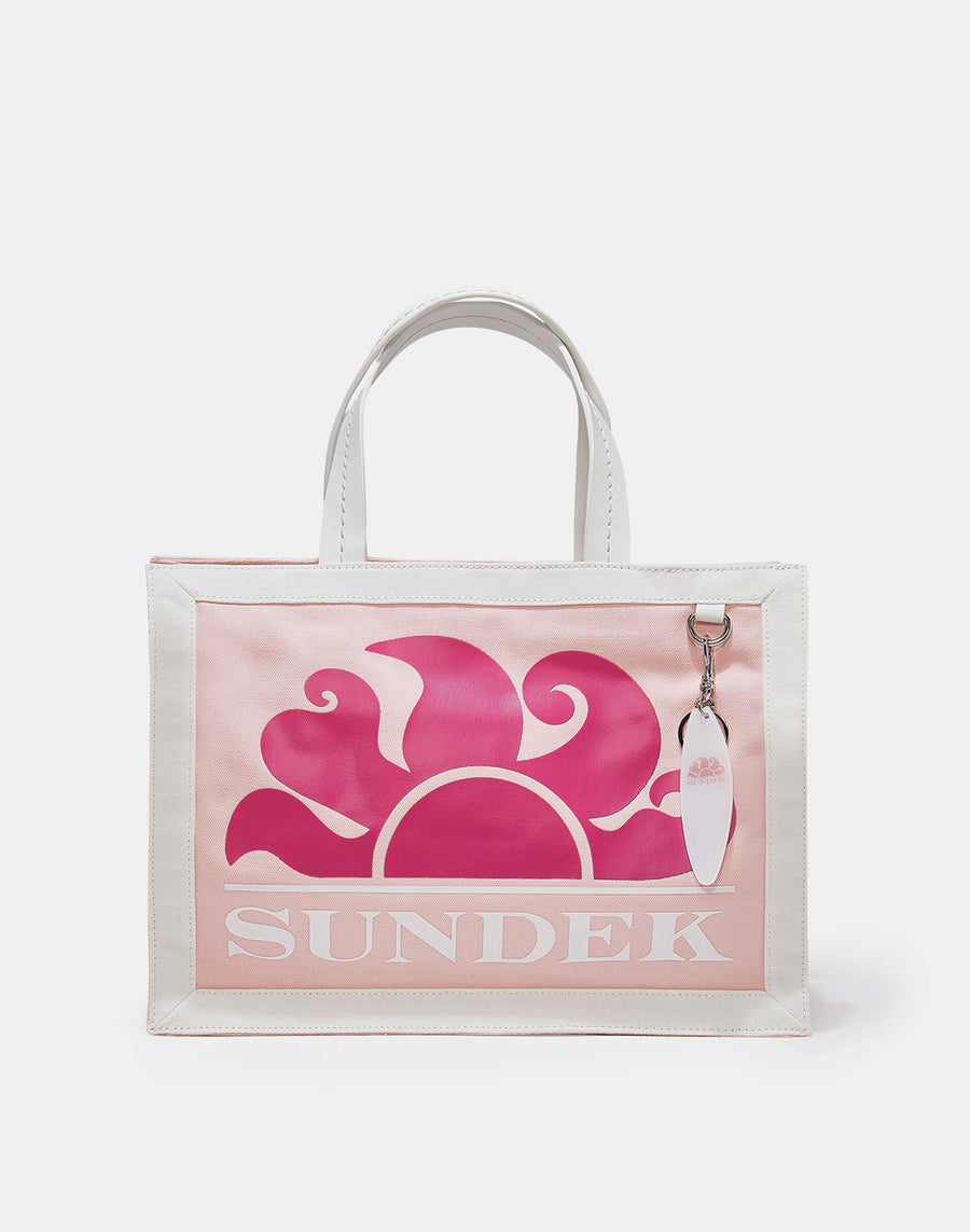 Medium canvas handbag with a printed Sundek logo. Iconic surfboard charm