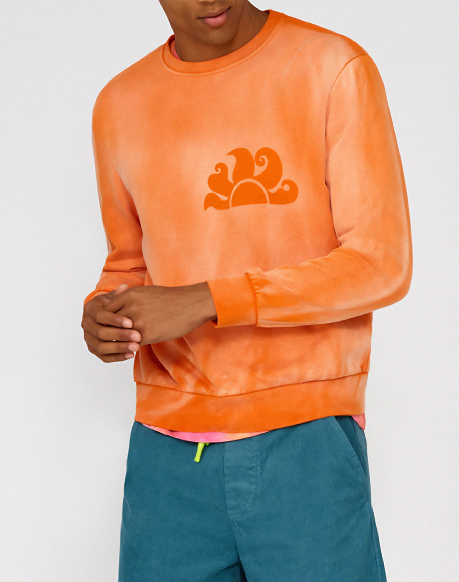 Wide and comfortable cotton sweatshirt, treated with faded effect finish. Perfect for a vintage look, with printed logo on the chest. Regular fit.