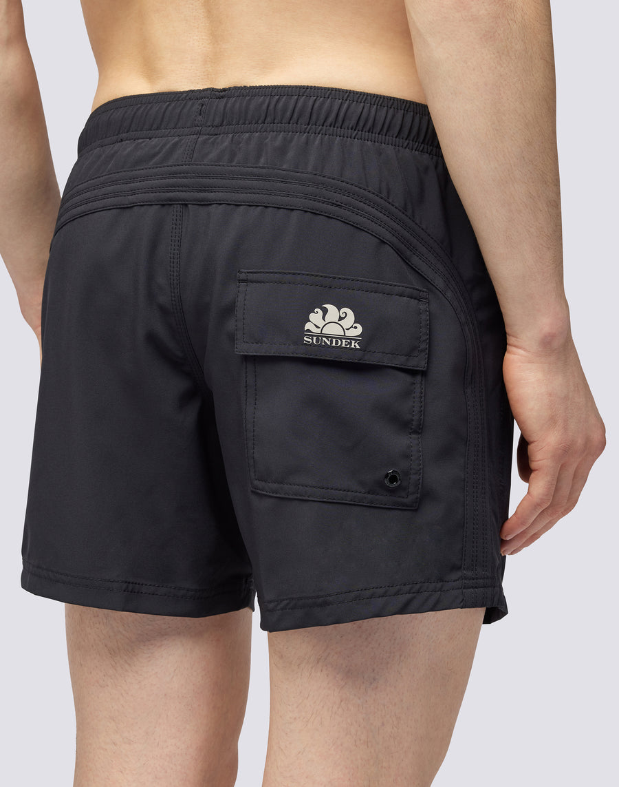 GoldenWave Sundek men's swimshorts, with delicate tone-on-tone rainbow back, drawstring and elasticated waist. Back pocket with embroidered logo. The model is 188cm tall and wears a size M.