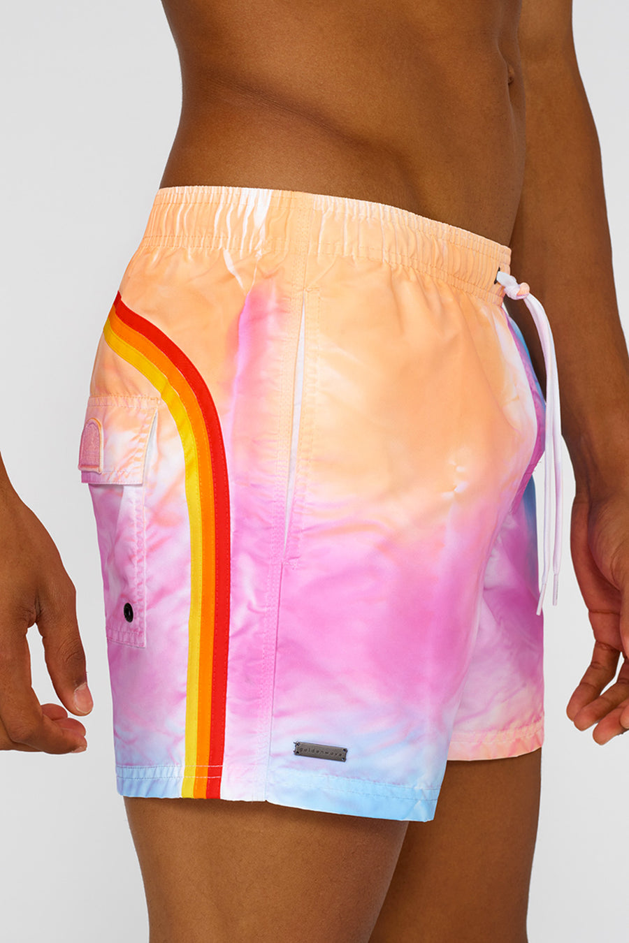 Get ready to ride the next wave with the elastic-waisted short swimming costume with special tie-dye processing, treated and dyed using artisanal techniques. The historic nylon taffeta fabric and pattern construction makes it quick-drying and super durable season after season. Low waist fit.