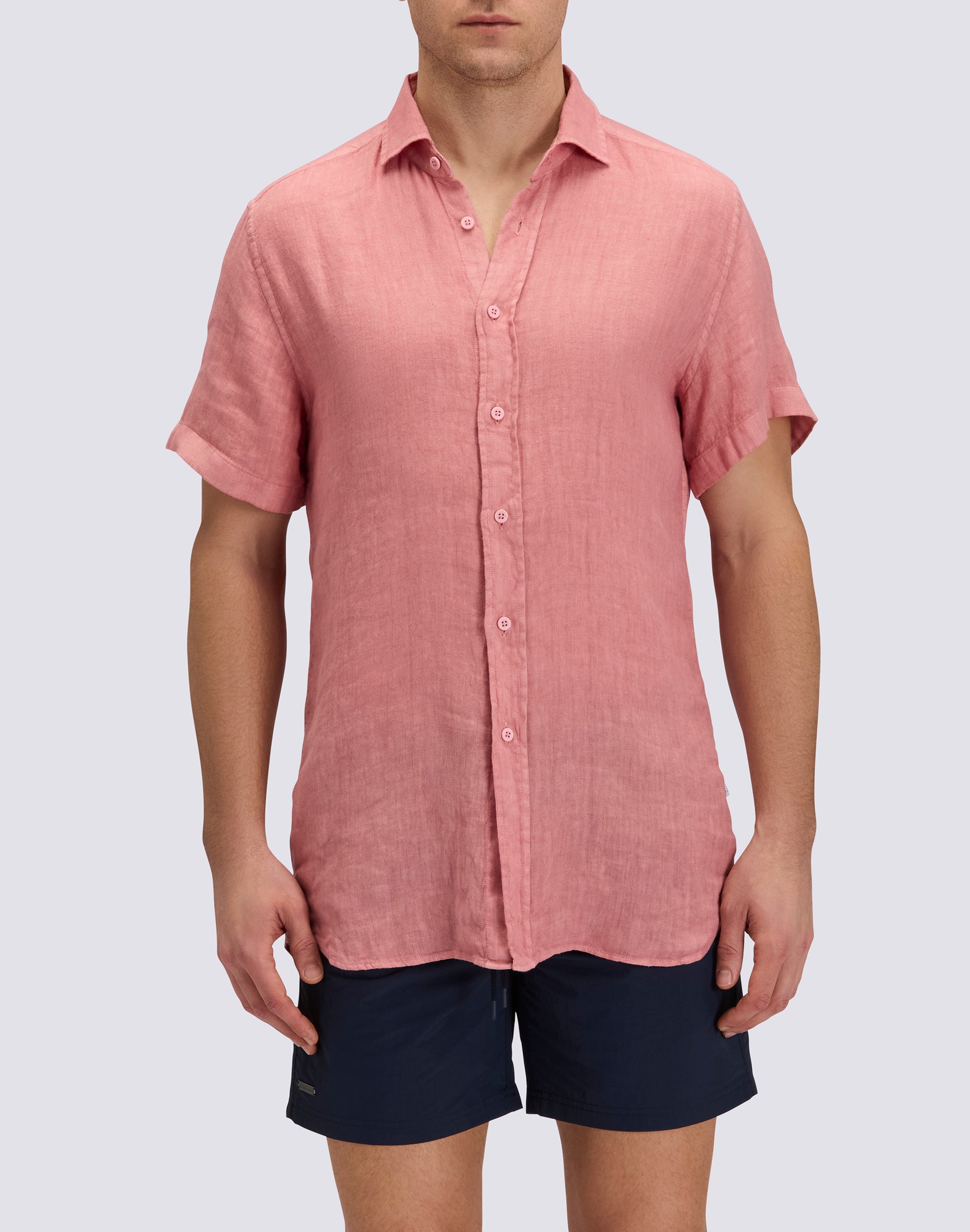 Add a touch of freshness to your summer wardrobe with this men's short-sleeved, garment-dyed linen shirt in a regular fit. Perfect for a variety of occasions, from the beach to cocktail hours, simple, lightweight, and versatile.