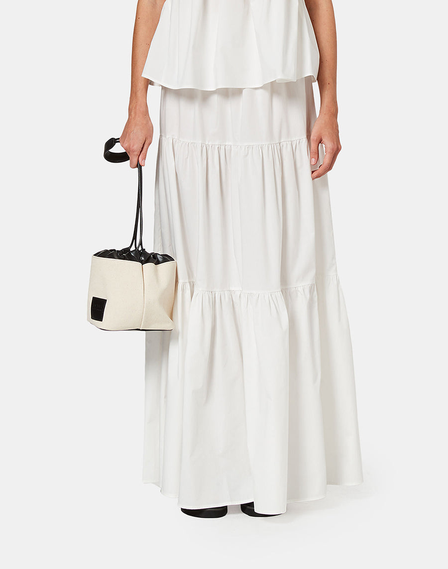 Made from cotton poplin, this long tiered skirt is set apart by its loose fit and feminine design. A versatile piece for a wide variety of looks.